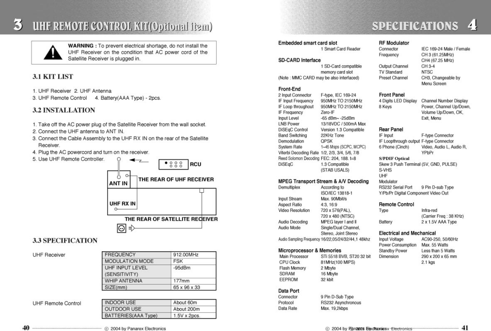 Global Technologies PANSAT3500S Digital Satellite Receiver User Manual Pansat3500S 0519