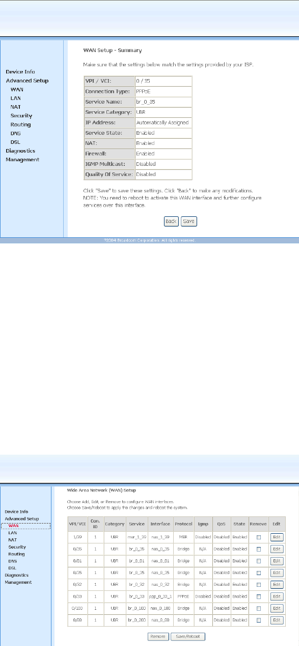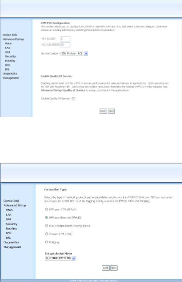 2)To setup VPI/VCI and service types, please refer to the requirements of network service