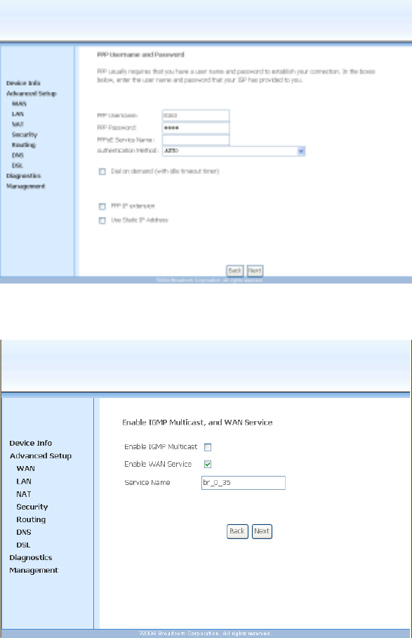 4)Please press “Next” after the setup to enter the dialing username/password setting