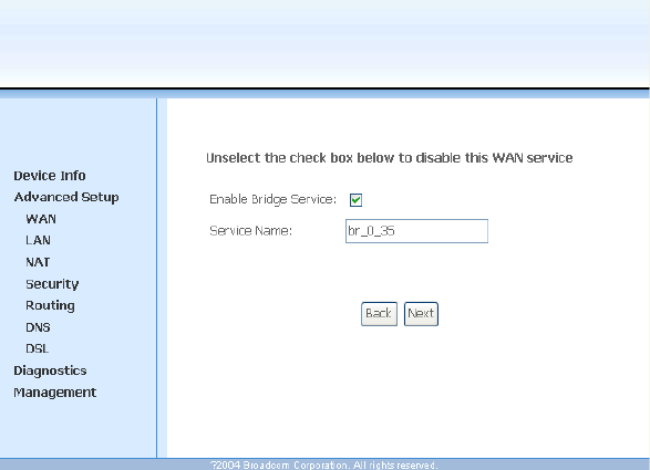 supplier. Supposedly, VPI:0, VCI:35, then the service type is “UBR without PCR”.