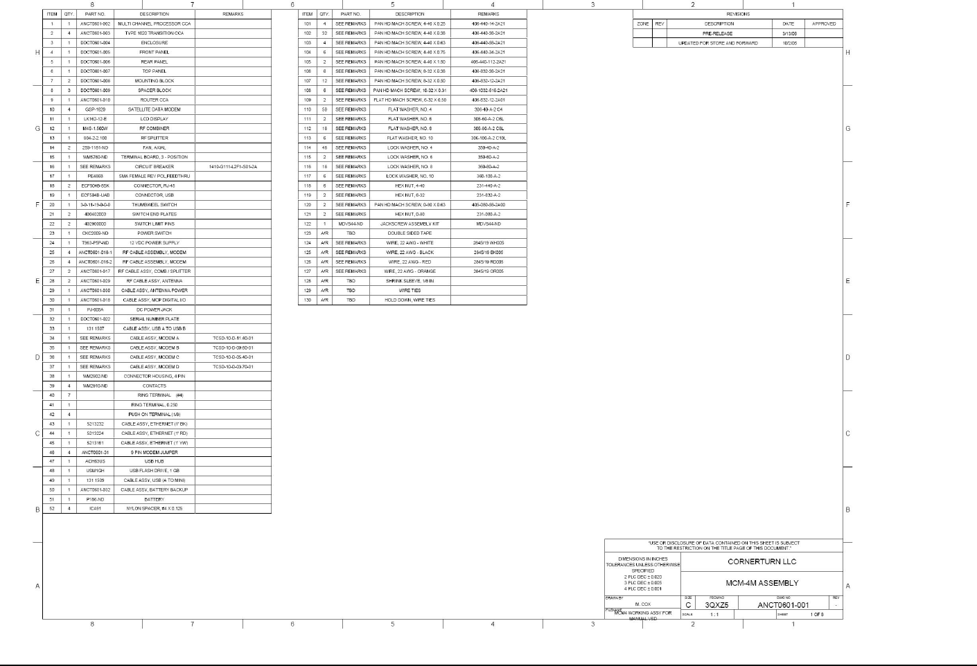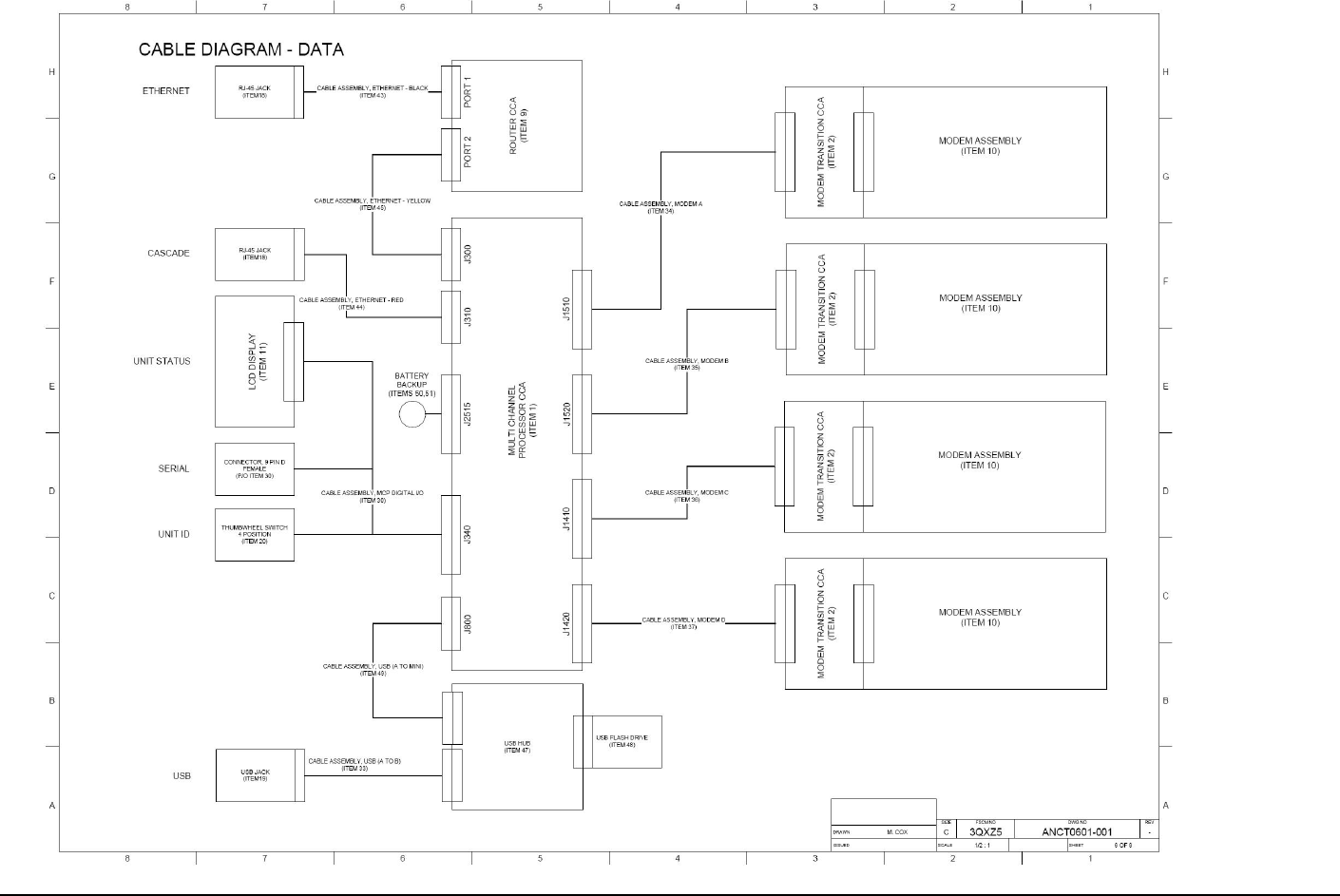 ANCT0601-001 MCM-4M Cable DWG – Modem Data/Cntl Ports to MCP CCA