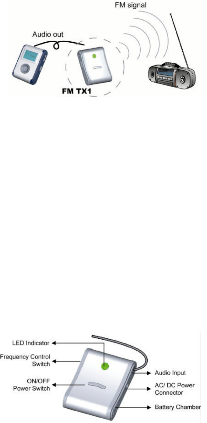 3. Frequency: 88.5 MHz ~ 88.9 MHz (3 default channel: 1=88.9MHz, 2=88.7MHz,