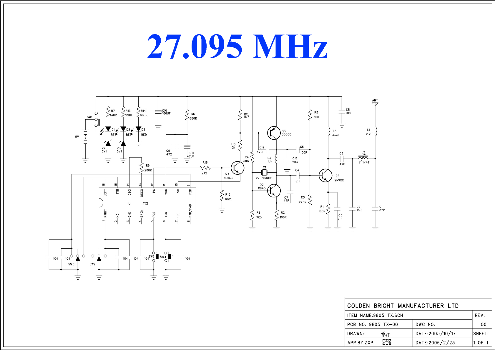 Golden Bright Manufacturer 9805 WIRELESS RC/TOY-TX User Manual SCHEMATIC