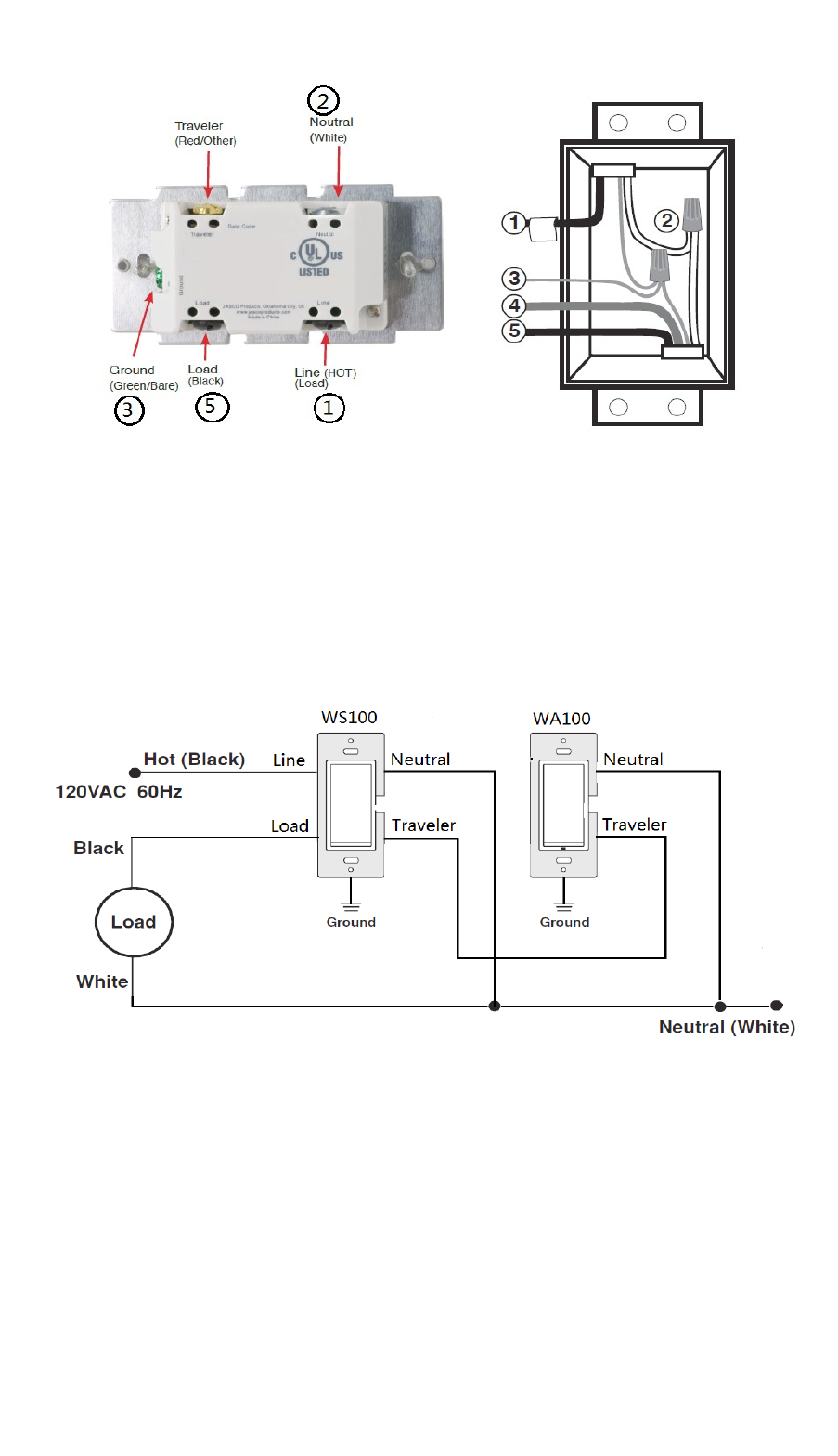 Please refer to WA-100 user manual for wiring instructions of the associating switch. The