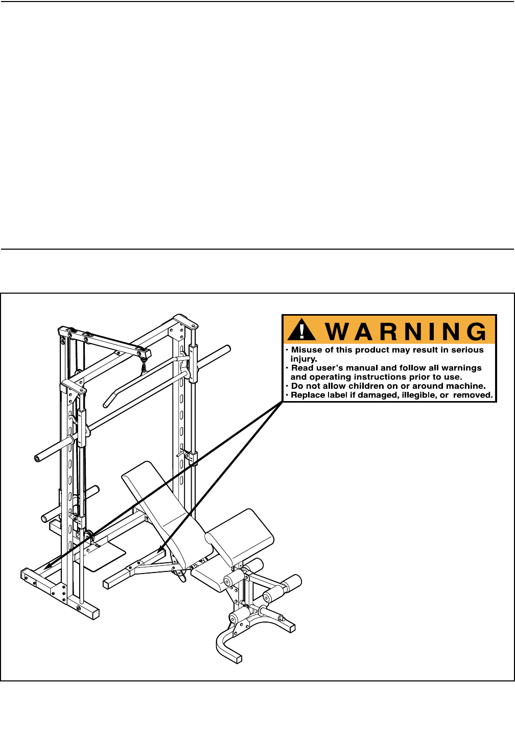 the weight bench. If a decal is missing or