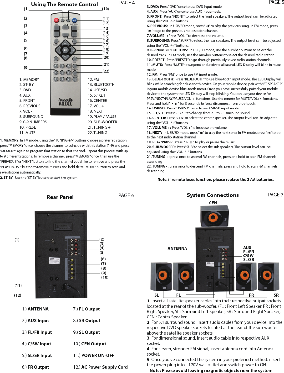 Goldwood Sound AA5170 5.1CH MULTIMEDIA SPEAKER SYSTEM User Manual