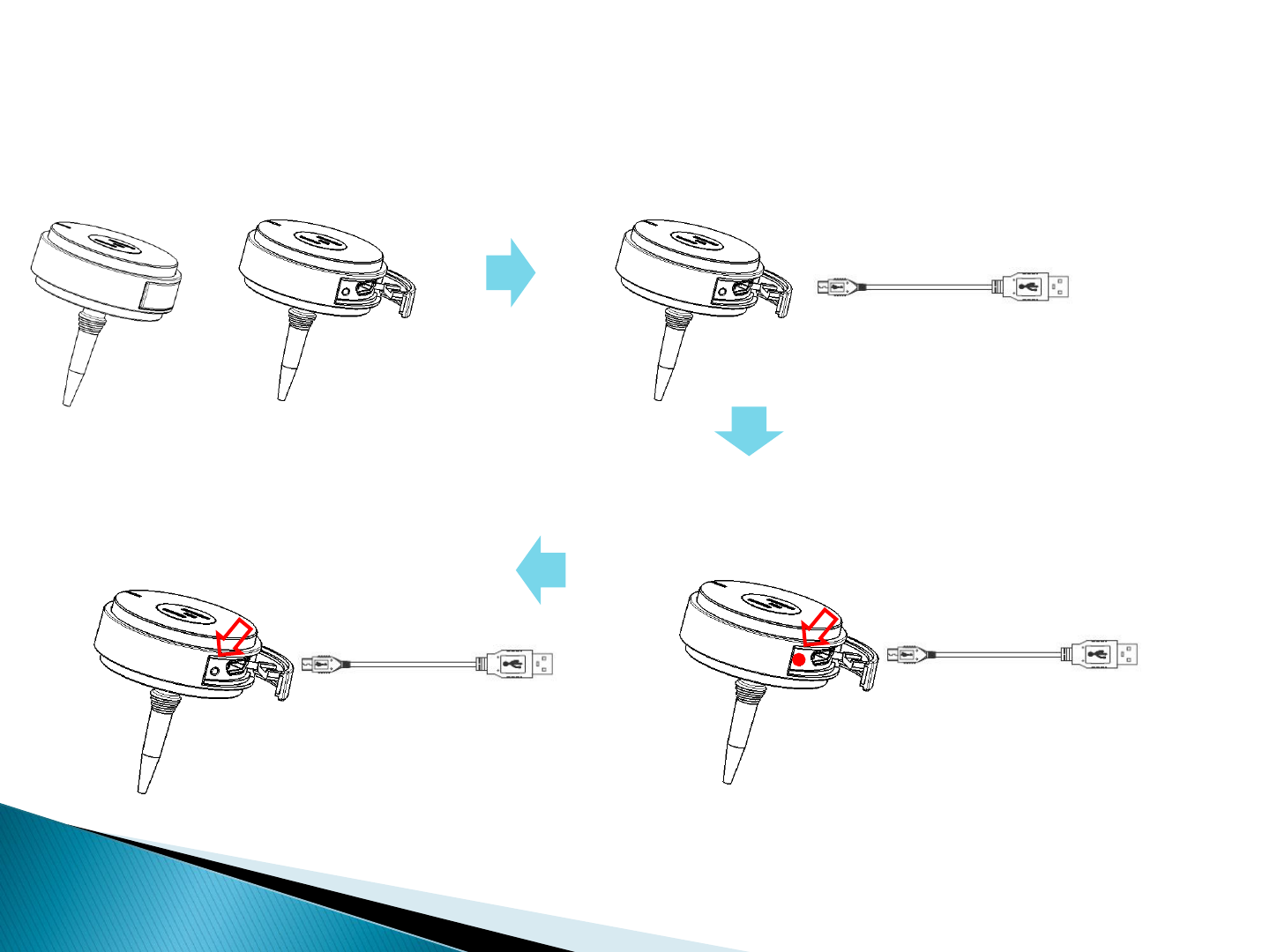 1. Open the cover 2. Connect USB cable