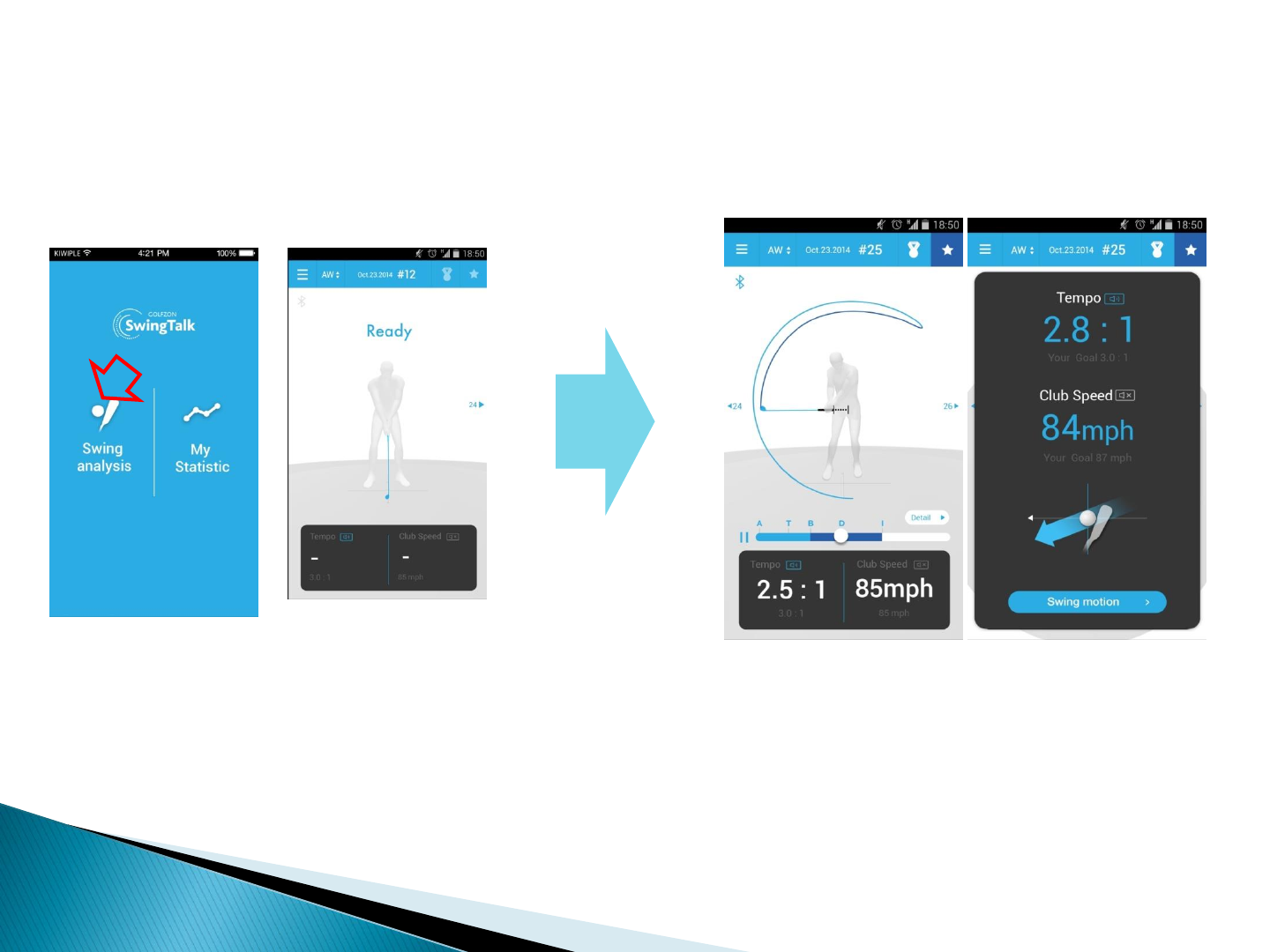 smartdevice via Bluetooth. Tap ‘New swing’ in the app and swing, Swingtalk will automatically