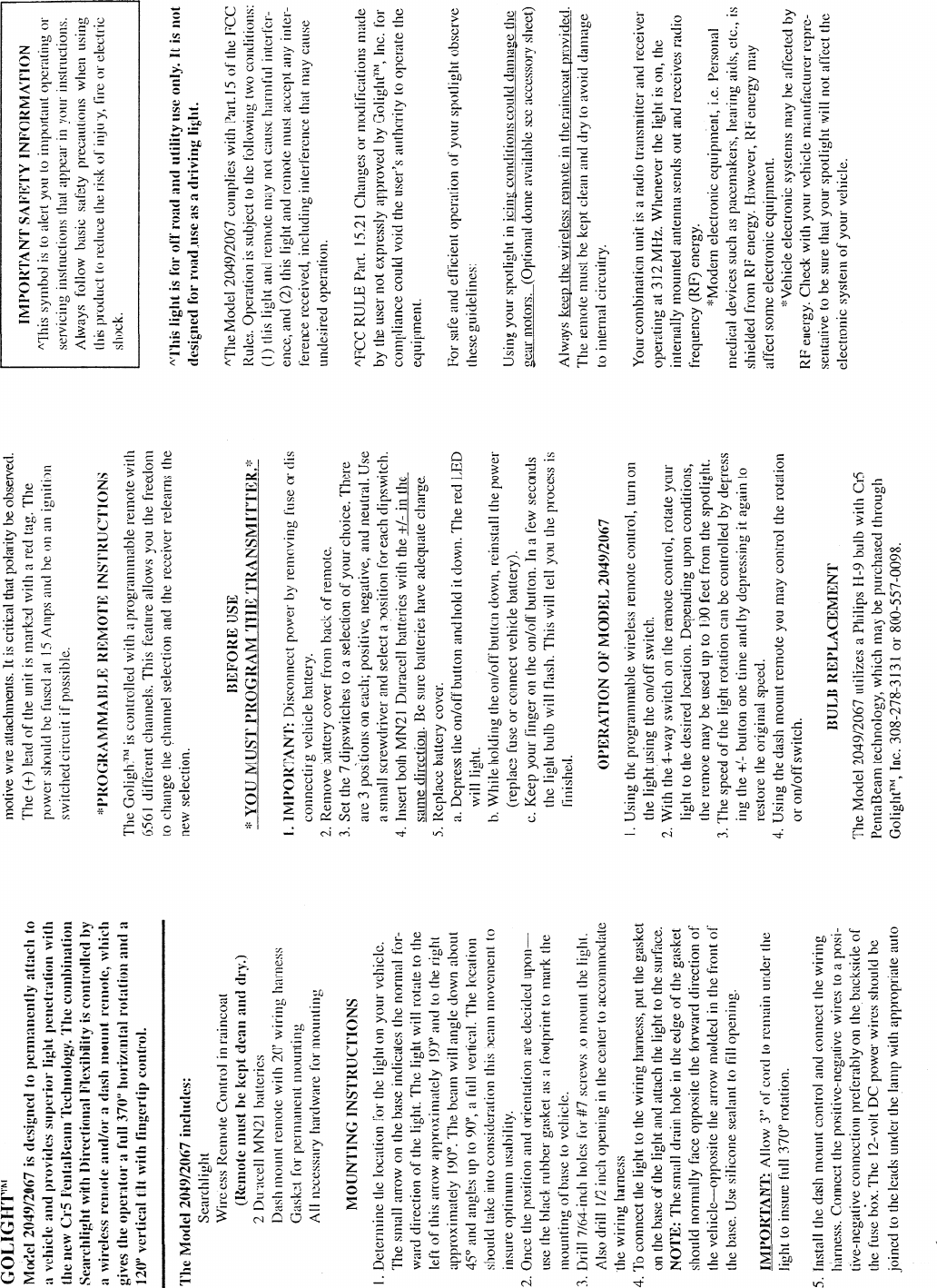 Golight 2067T GOLIGHT Remote Control Transmitter User Manual 5 2004 5