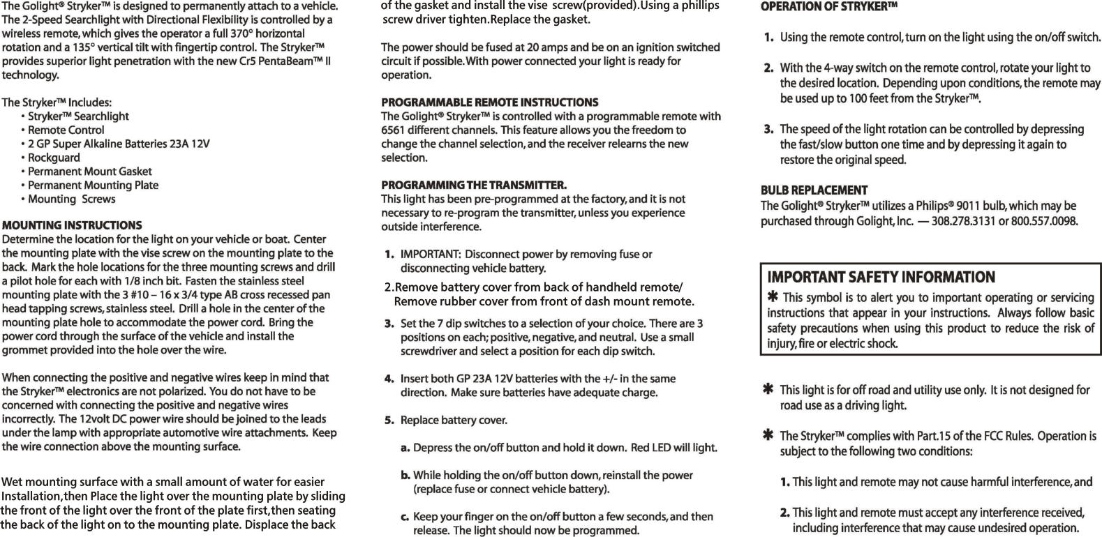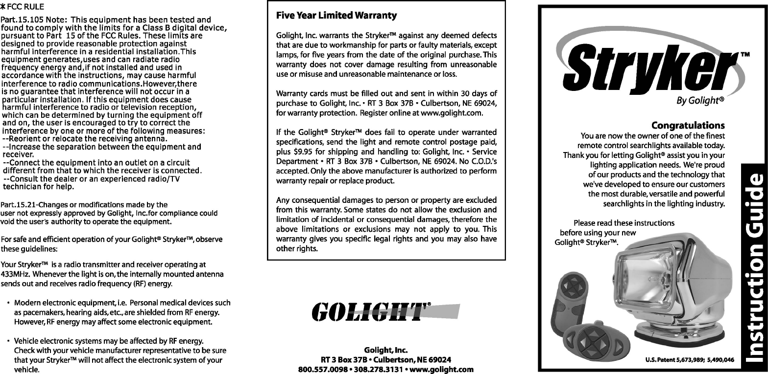 Golight Inc Remote Control Transmitter Users Manual