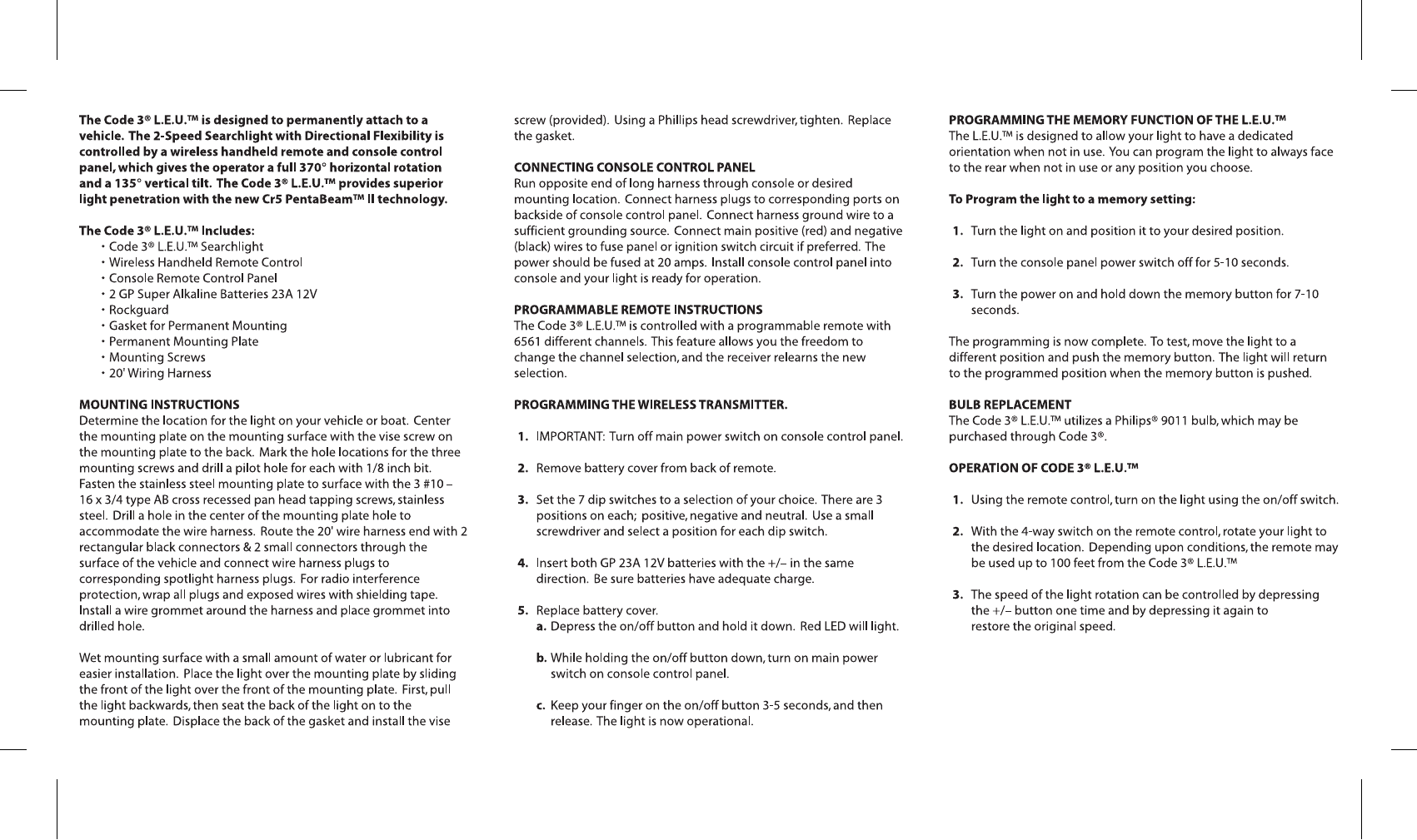 Golight 3200T Wireless Handheld Remote Control User Manual