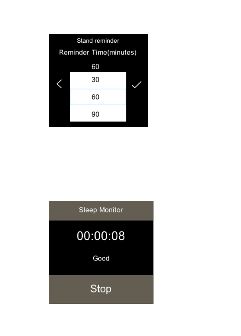 Find the “stand reminder” on the main menu, click to start setting, select the reminder time(minutes),as shown
