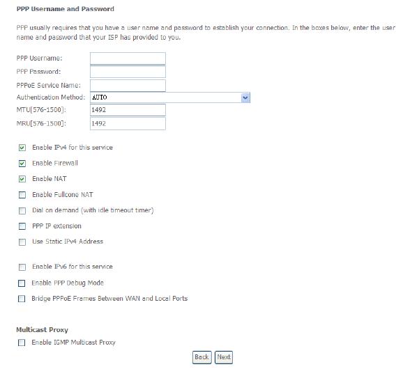 A: Check whether the VPI, VCI, user name, and password are correctly