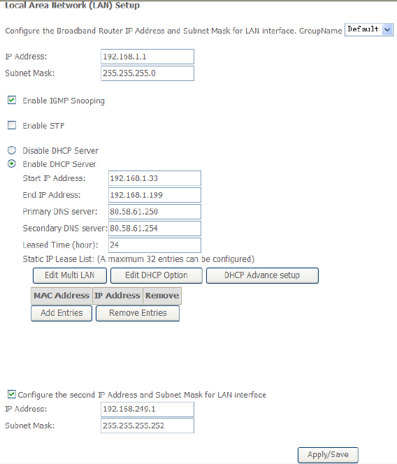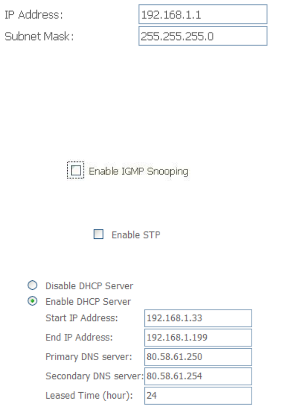 address and the subnet mask of the DSL router are 192.168.1.1 and
