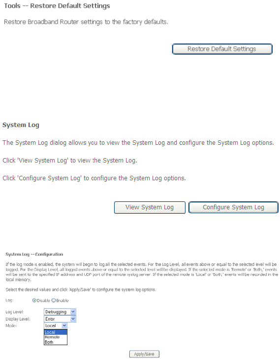 In this page, click the Reboot button, and then the router reboots.