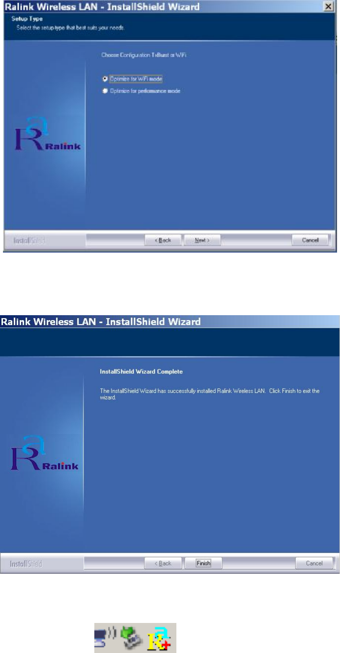 “optimize for WiFi mode” and then click “next”. Then the installation begins.