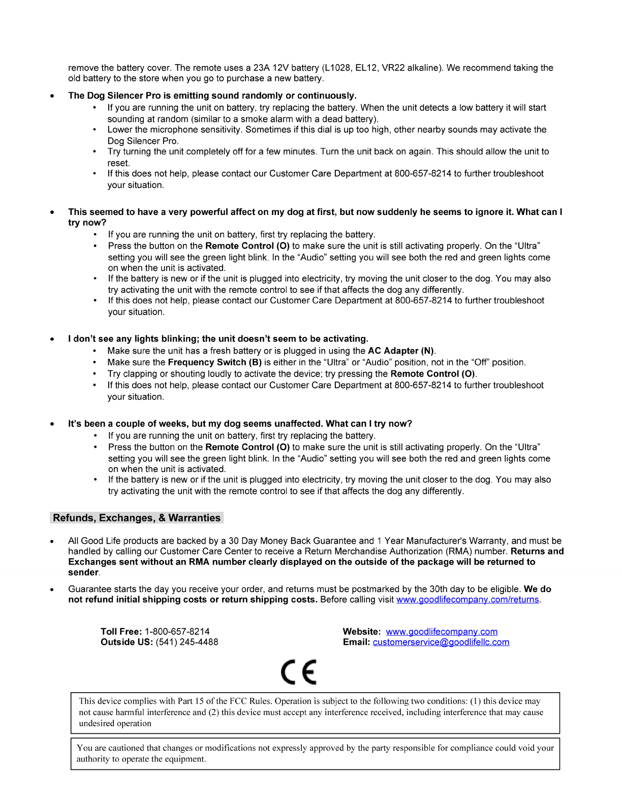 Good Life UP1730 DOG SILENCER PRO User Manual The Dog Silencer Pro Instruction Manual