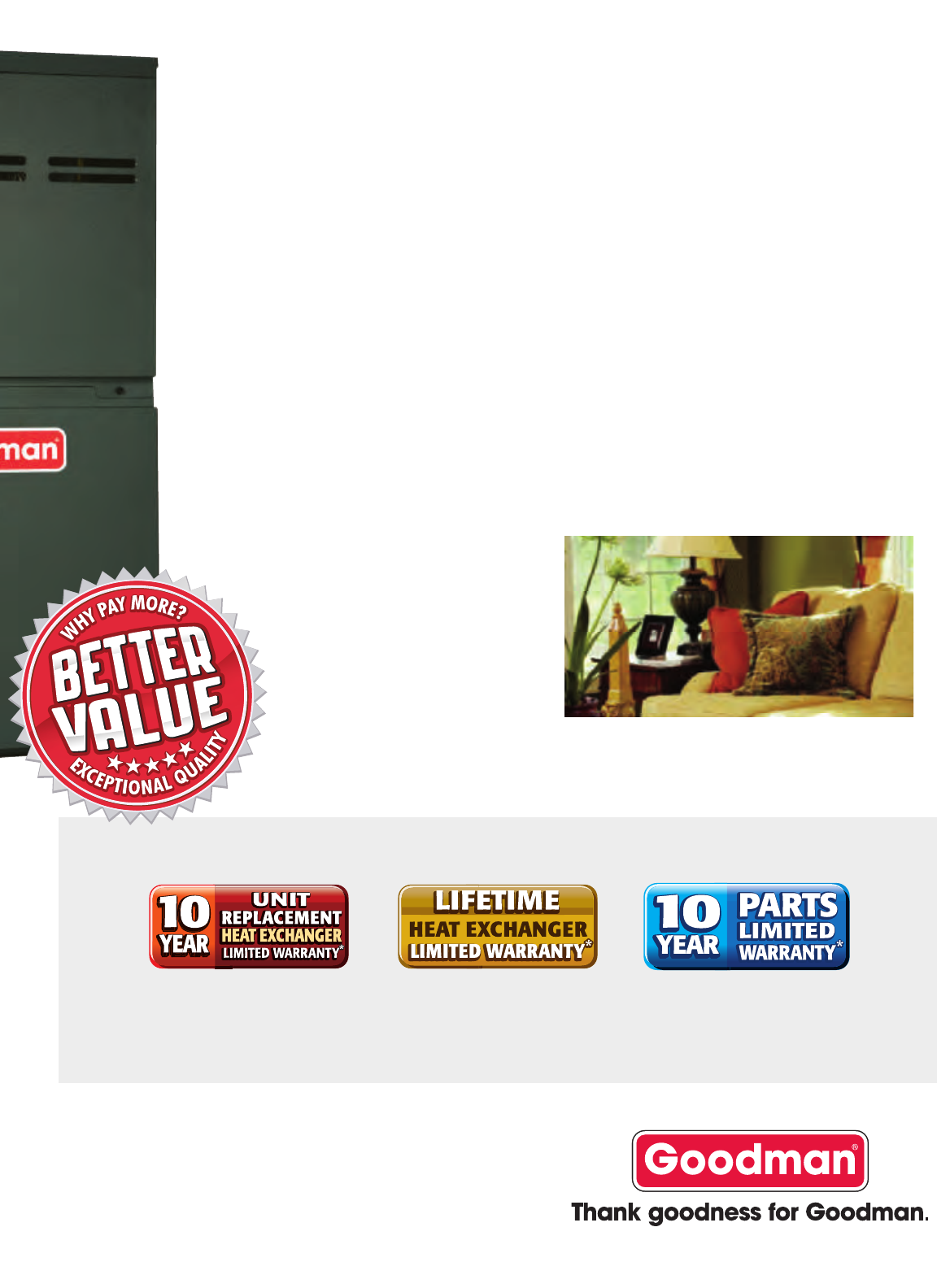 *Complete warranty details available from your local dealer or at www.goodmanmfg.com. To receive the 10-Year