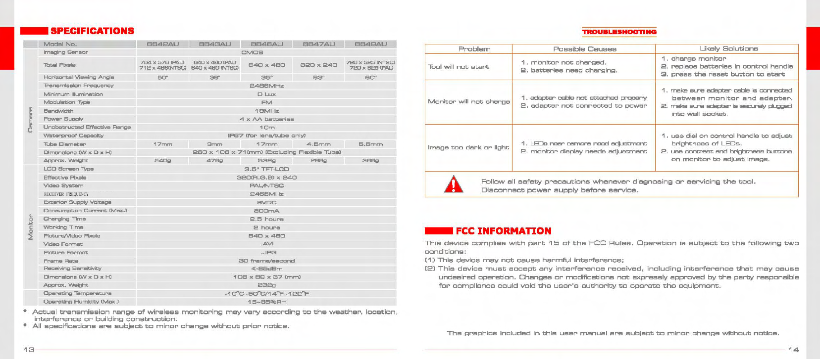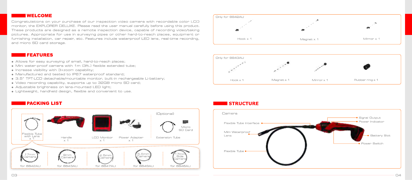 Gospell Smarthome Electronic GB8843-GB8849 Wireless Inspection Camera User Manual 8842 8843 8846 8847 8849AU