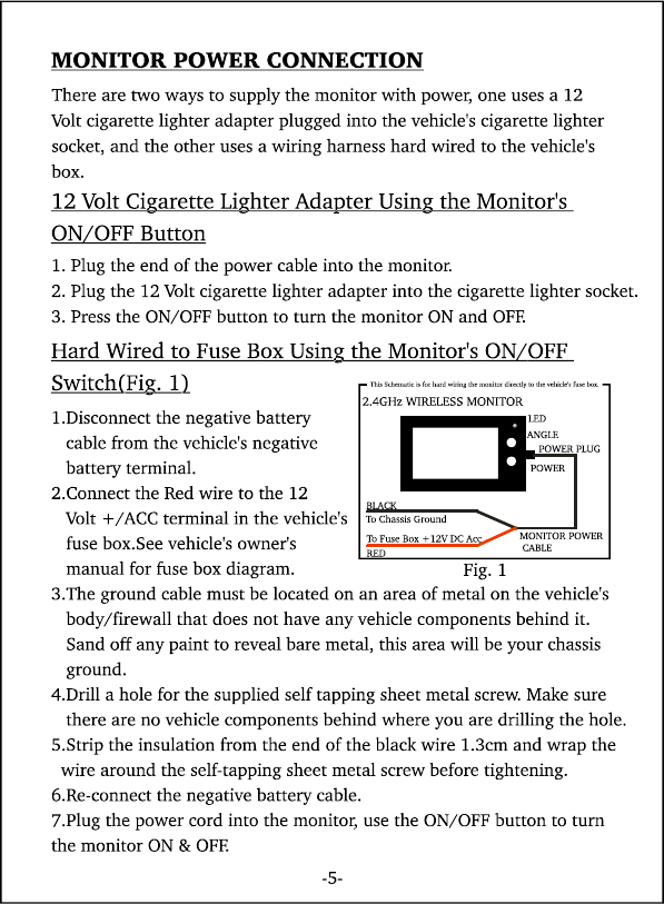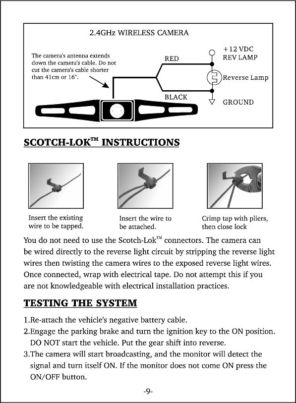 Gospell Smarthome Electronic GB8901 2.4GHz wireless back-up camera system User Manual Part 2