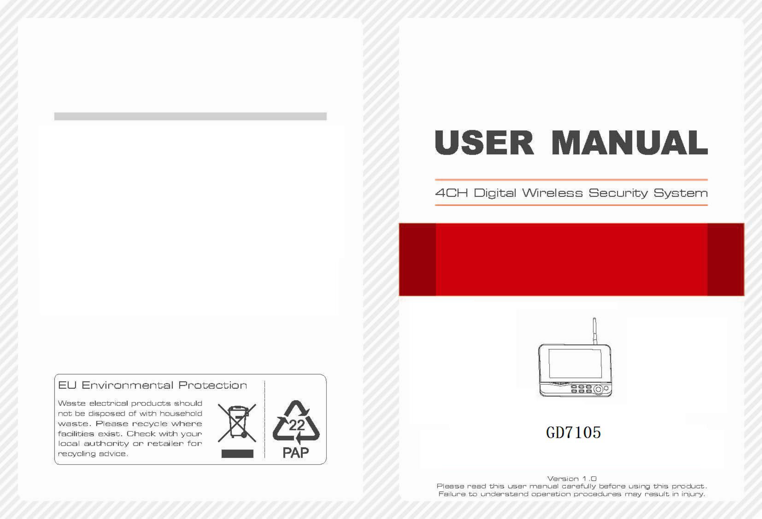 Gospell Smarthome Electronic GD7105 4CH Digital Wireless Security System User Manual