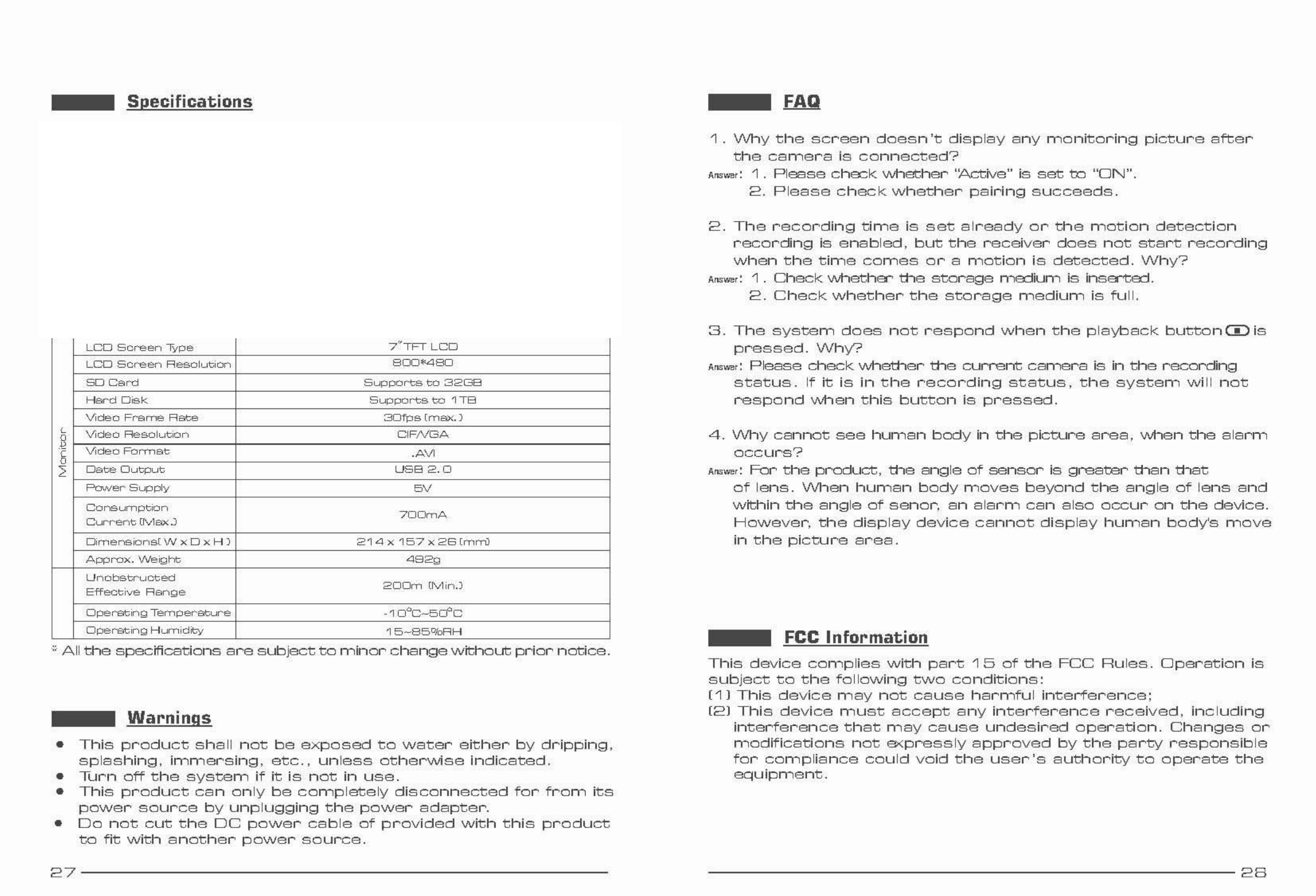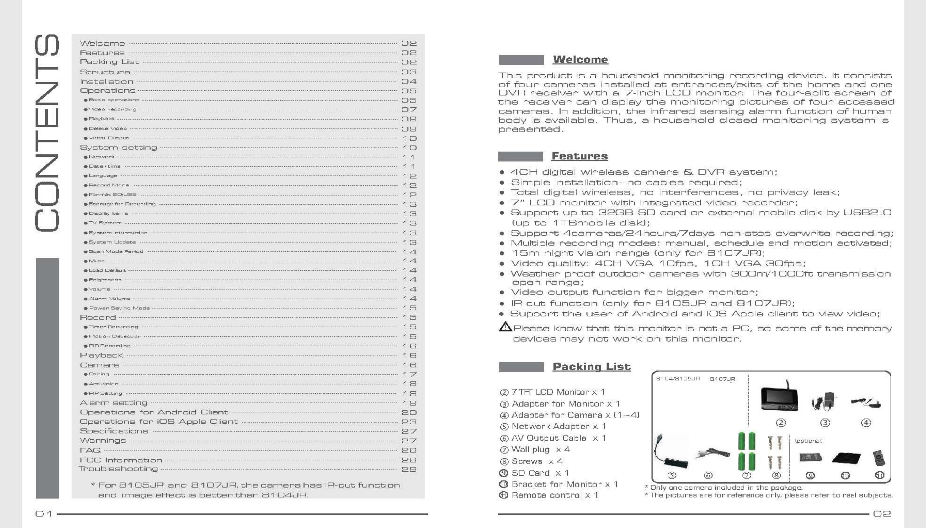 Shenzhen Gospell Smarthome Electronic Co., Ltd. 4CH Digital Wireless Security System Users Manual