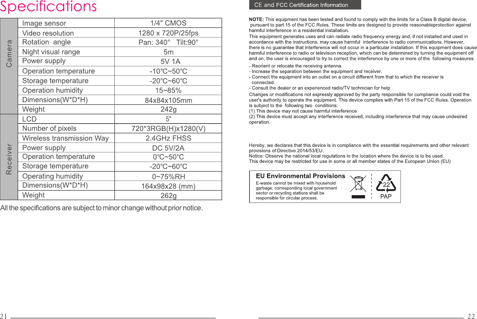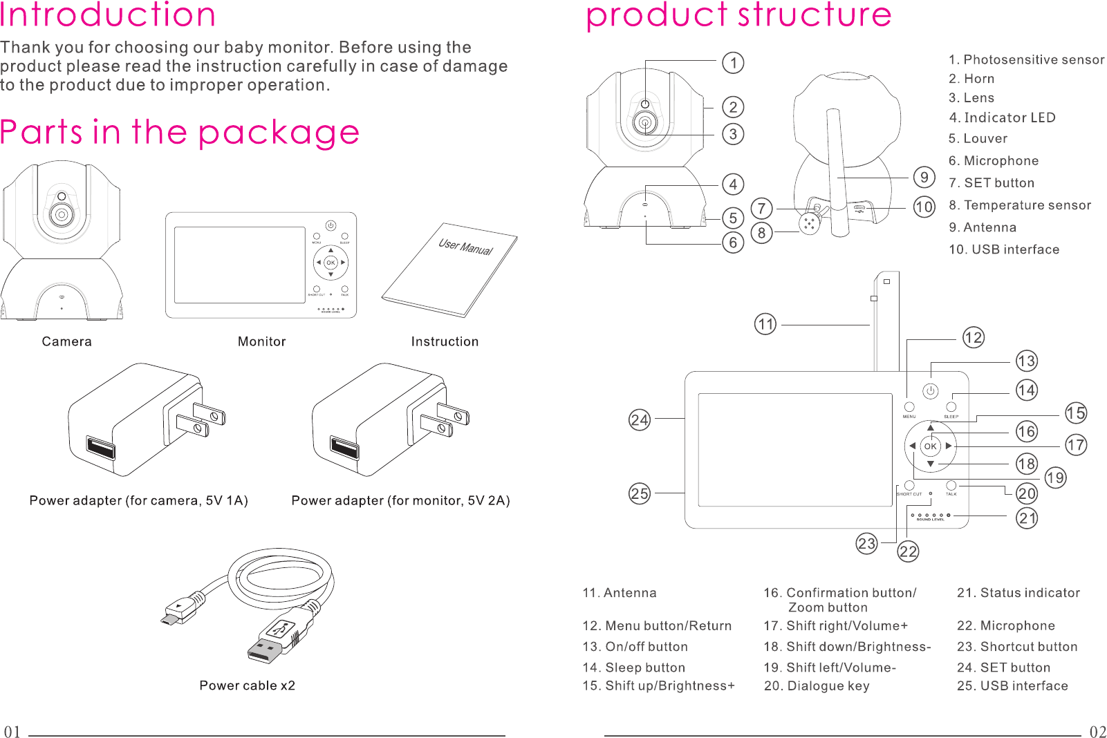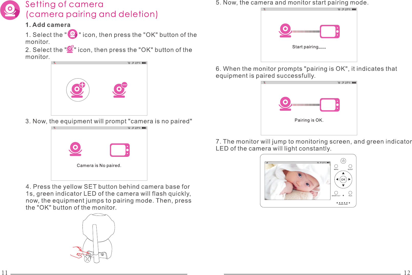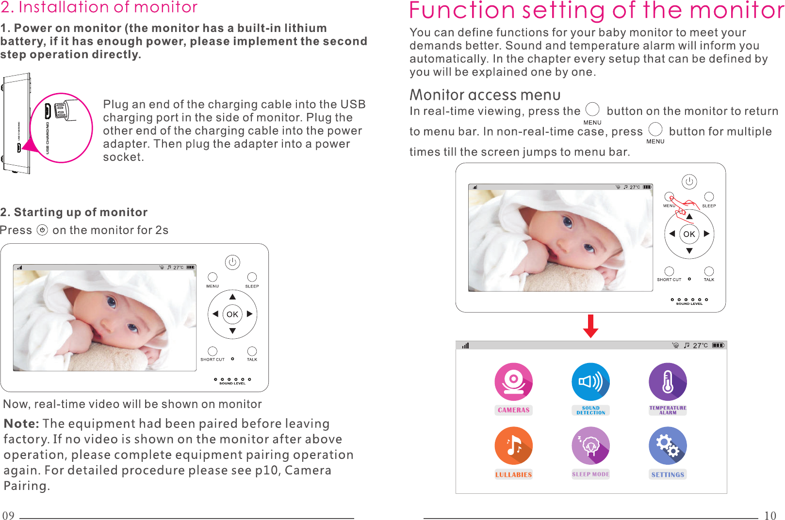 Gospell Smarthome Electronic GD7603 720P Digital Color Video Baby Monitor with 5 inch HD LCD User Manual GD7603