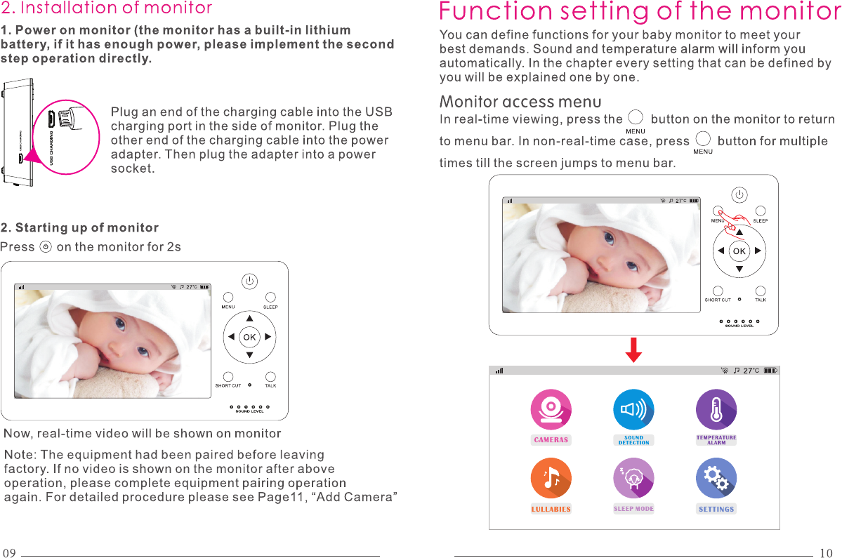 Gospell Smarthome Electronic GD8208 Baby Monitor User Manual