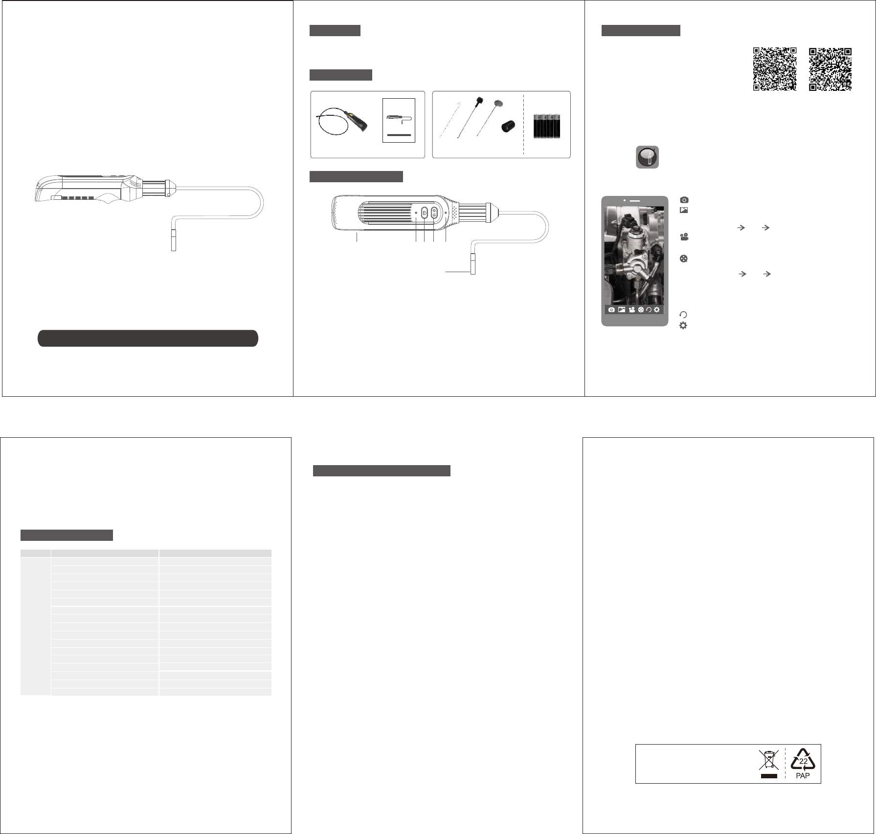 6. Camera: Ø8mm, Endoscope waterproof grade IP67.