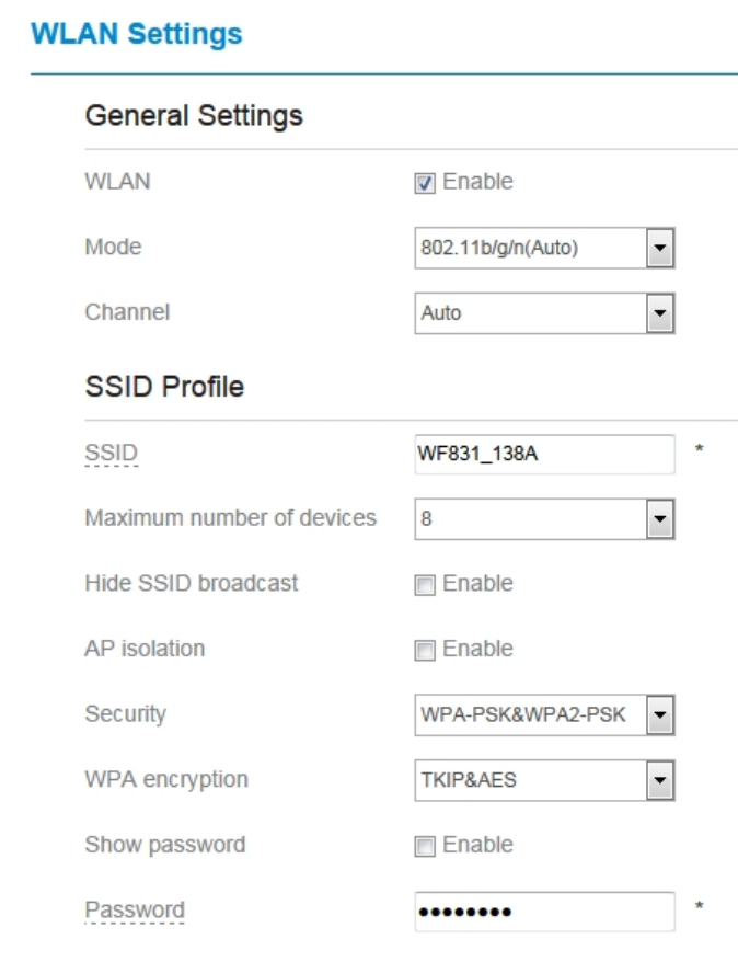Step5IntheSettingarea,modifytheSSID,suchas“WF831_138A”.