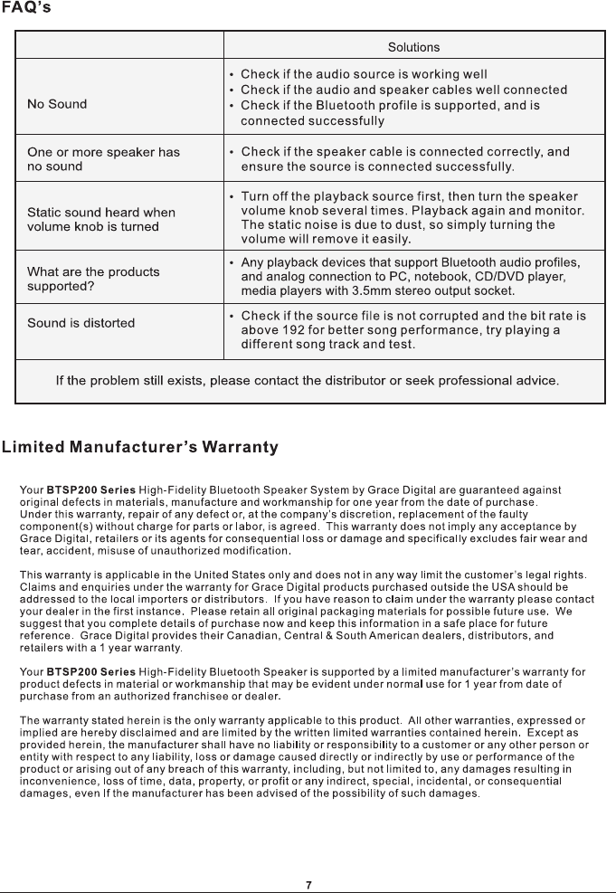 Grace Digital GDI-BTSP201 Bluetooth Speaker User Manual 80 H23 97 2135 01