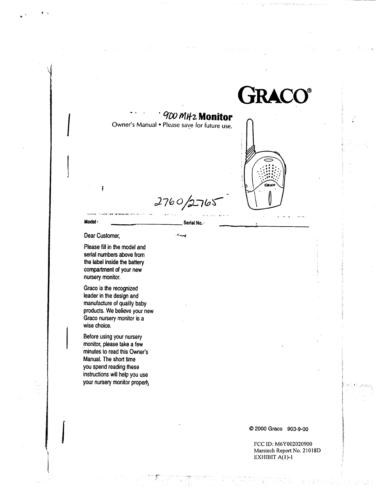 Graco Children s 002020900 One-Way 900MHz Baby Monitor User Manual users manual