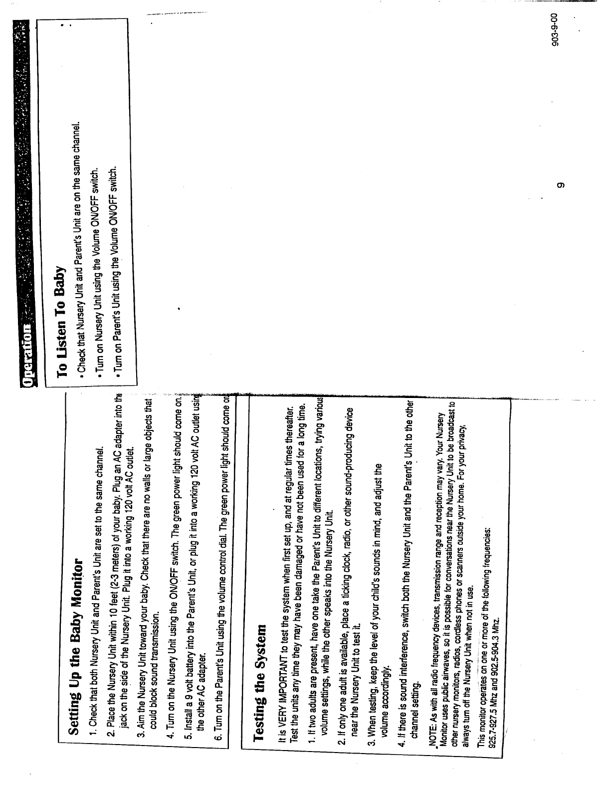 Graco Children's Products Inc One-Way 900MHz Baby Monitor users manual