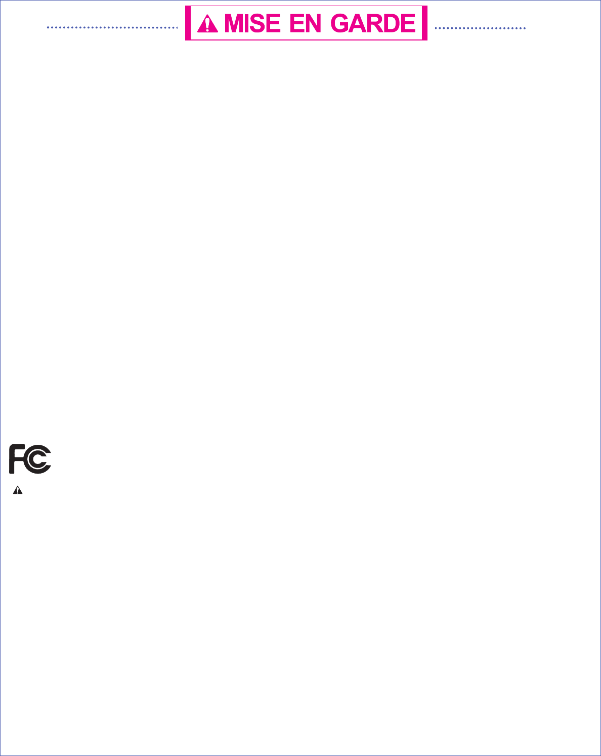 NE PAS TENTER de modifier l’appareil. Toute modification à l’émetteur ou au récepteur peut annuler
