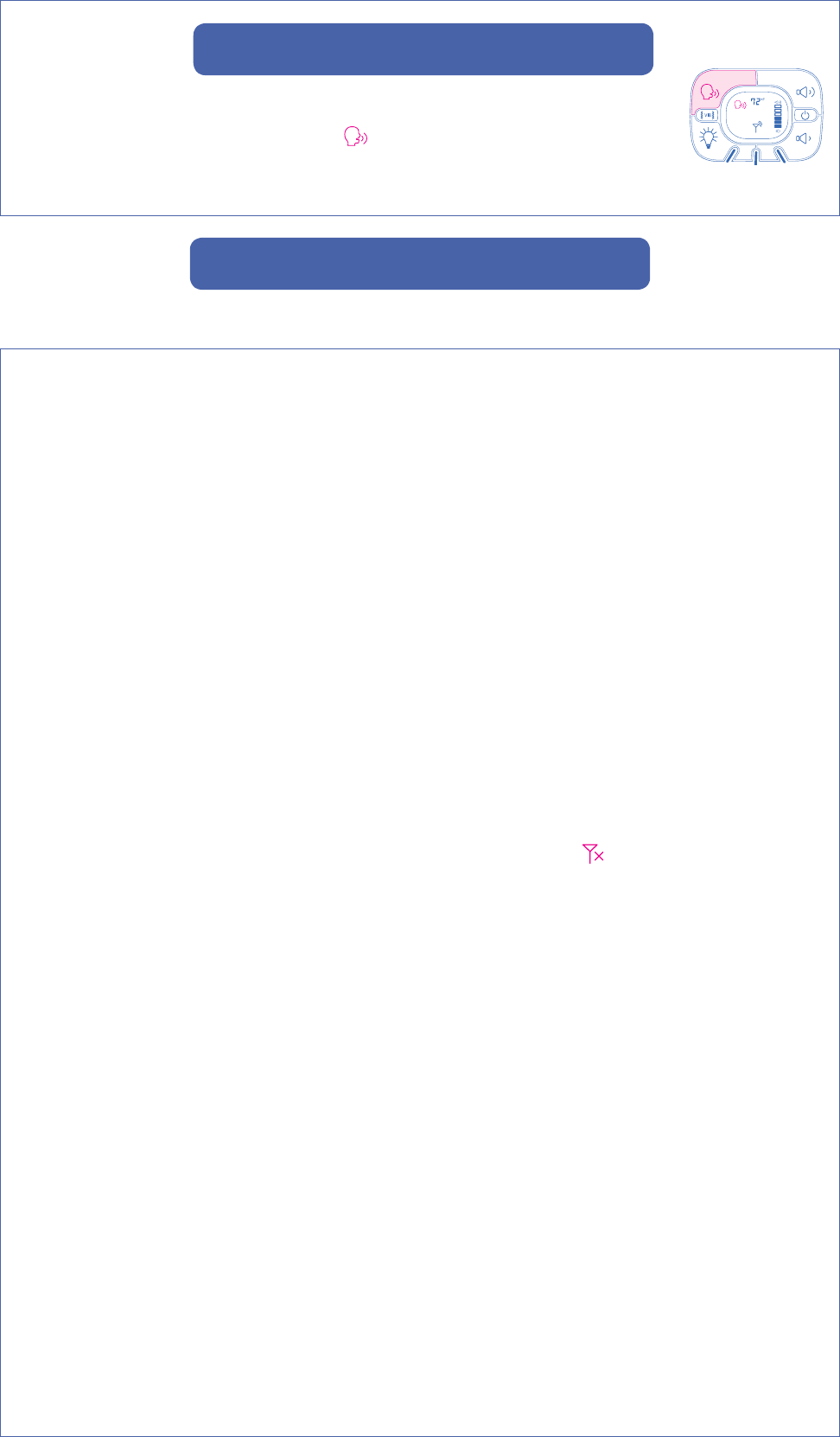 • DO NOT immerse any part of the Nursery Unit or Parent Units in water. Clean only with a dry cloth.