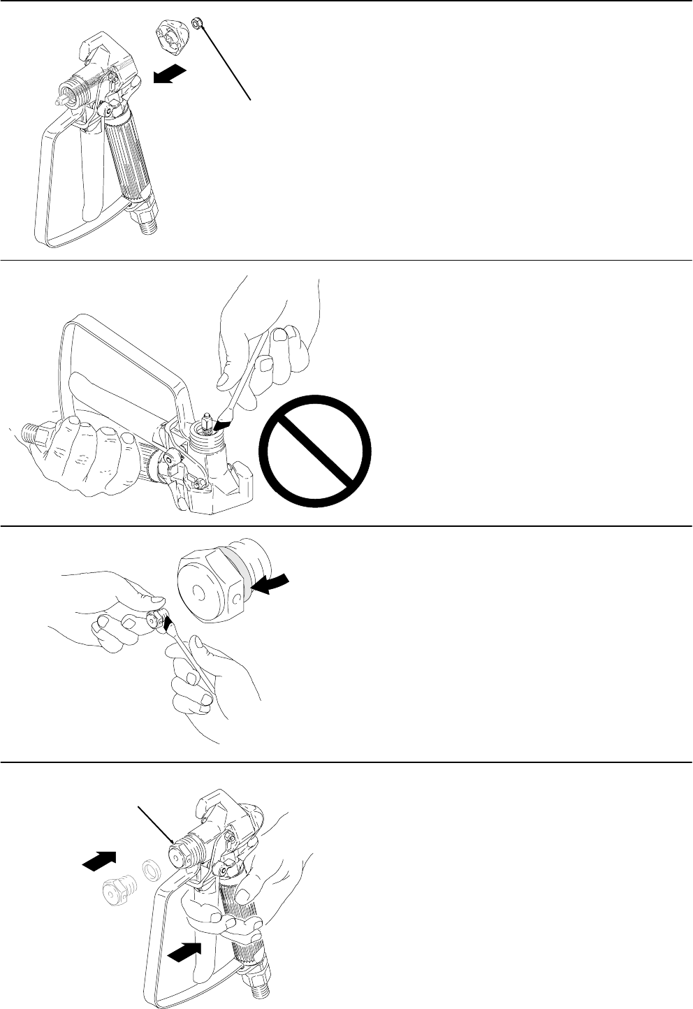 DDo not put your hand over the spray tip.