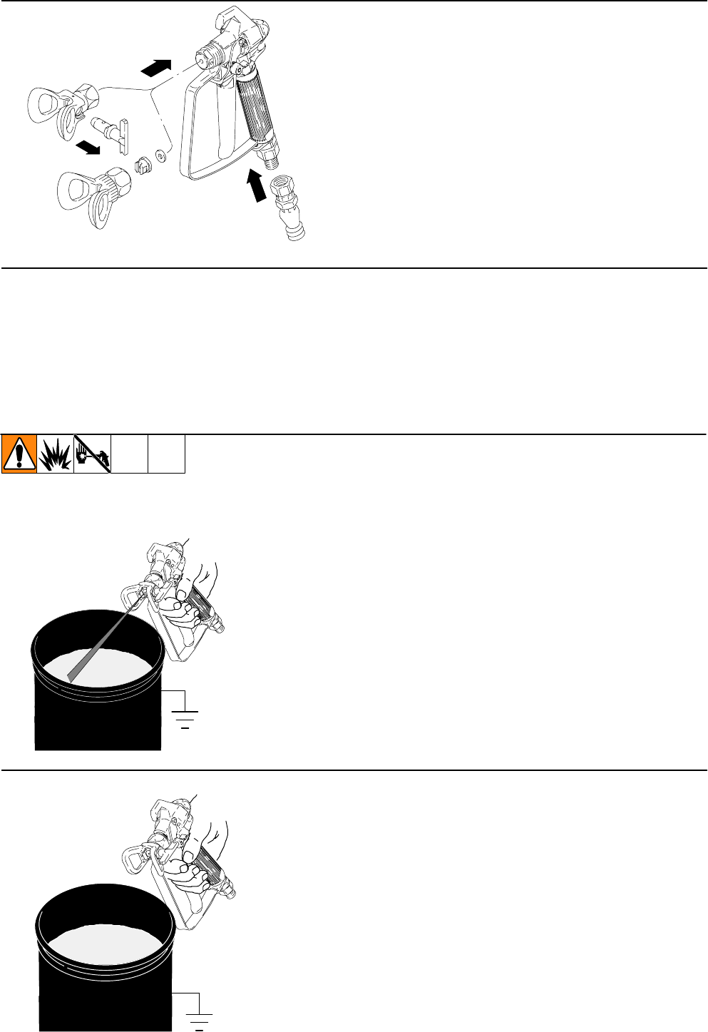 DSprayer generates sparks. When flammable liquid is used in or near sprayer or for flushing or