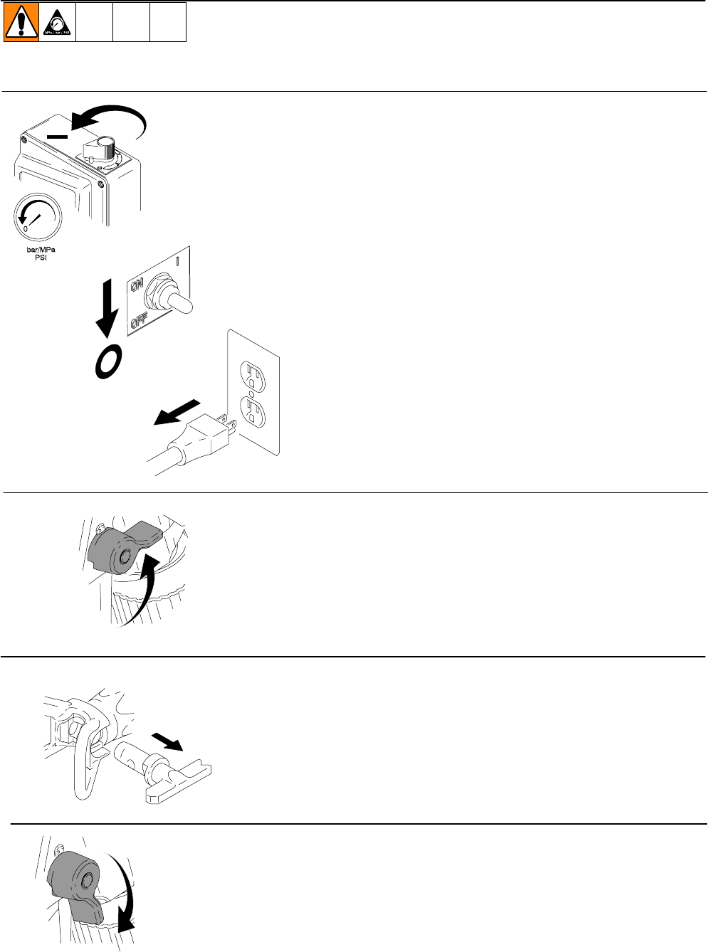 DFollow Pressure Relief Procedure in this manual, when you stop spraying and before cleaning,