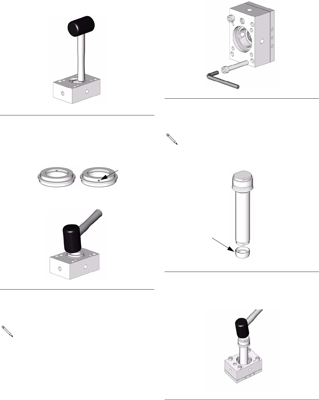 11. Tap cylinder onto piston rod as shown in FIG. 15. Be