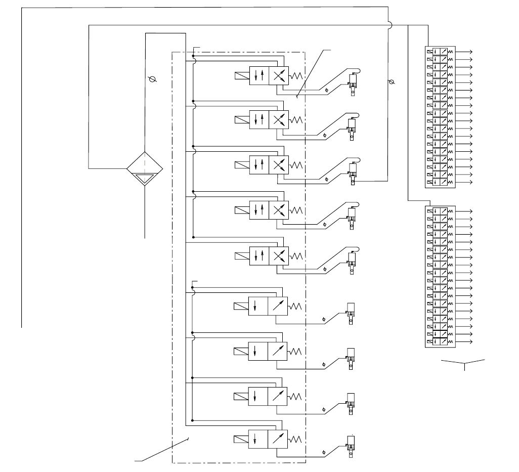 Air filtration for air logic and purge air (Graco-supplied). . 5 micron (minimum) filtration required; clean and dry air