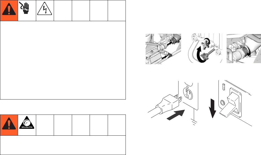 • If there is static sparking or you feel a shock, stop spraying immediately. Do not use equipment