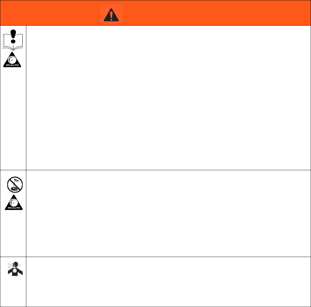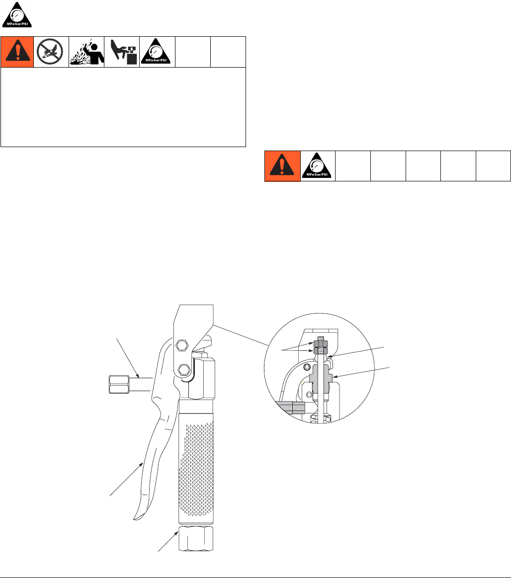 • Follow the Pressure Relief Procedure when you stop dispensing and before cleaning, checking, or