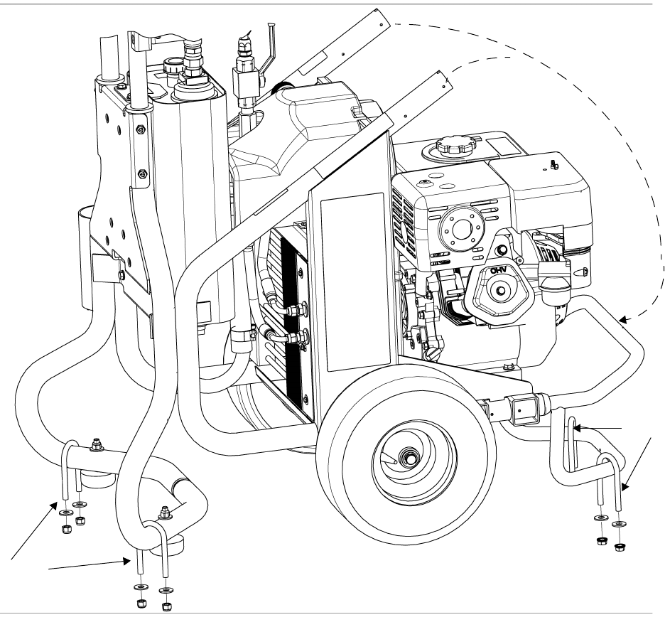 2. Place U-bolts over sprayer frame and through holes