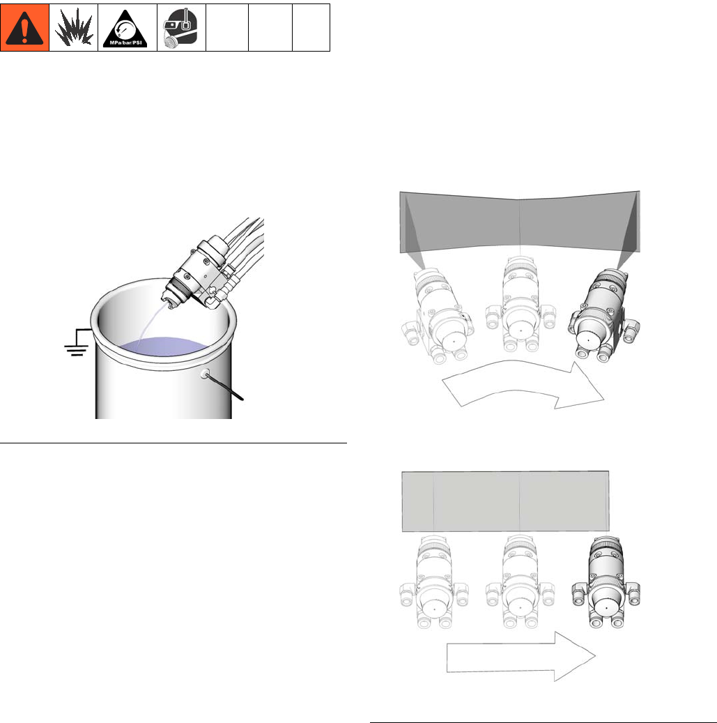 • Hold gun firmly to side of grounded pail when triggering into pail.