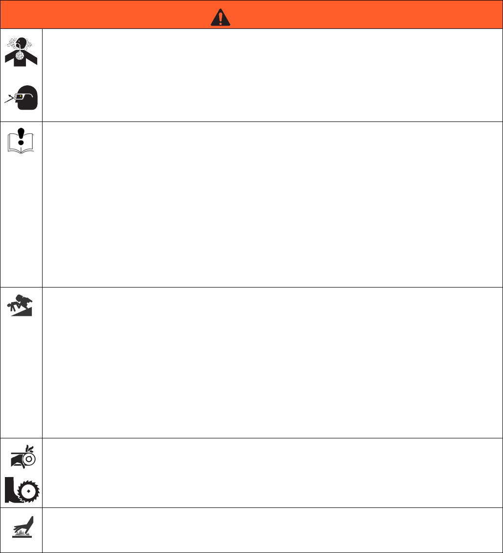 area of the equipment to help protect you from serious injury, including eye injury, inhalation of dust or