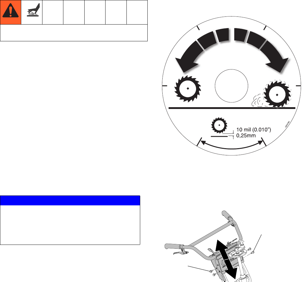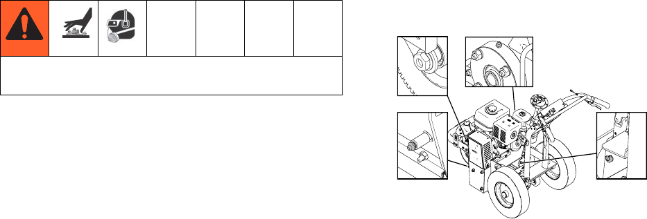 • Check equipment daily. Repair or replace worn or damaged parts immediately with genuine manu-