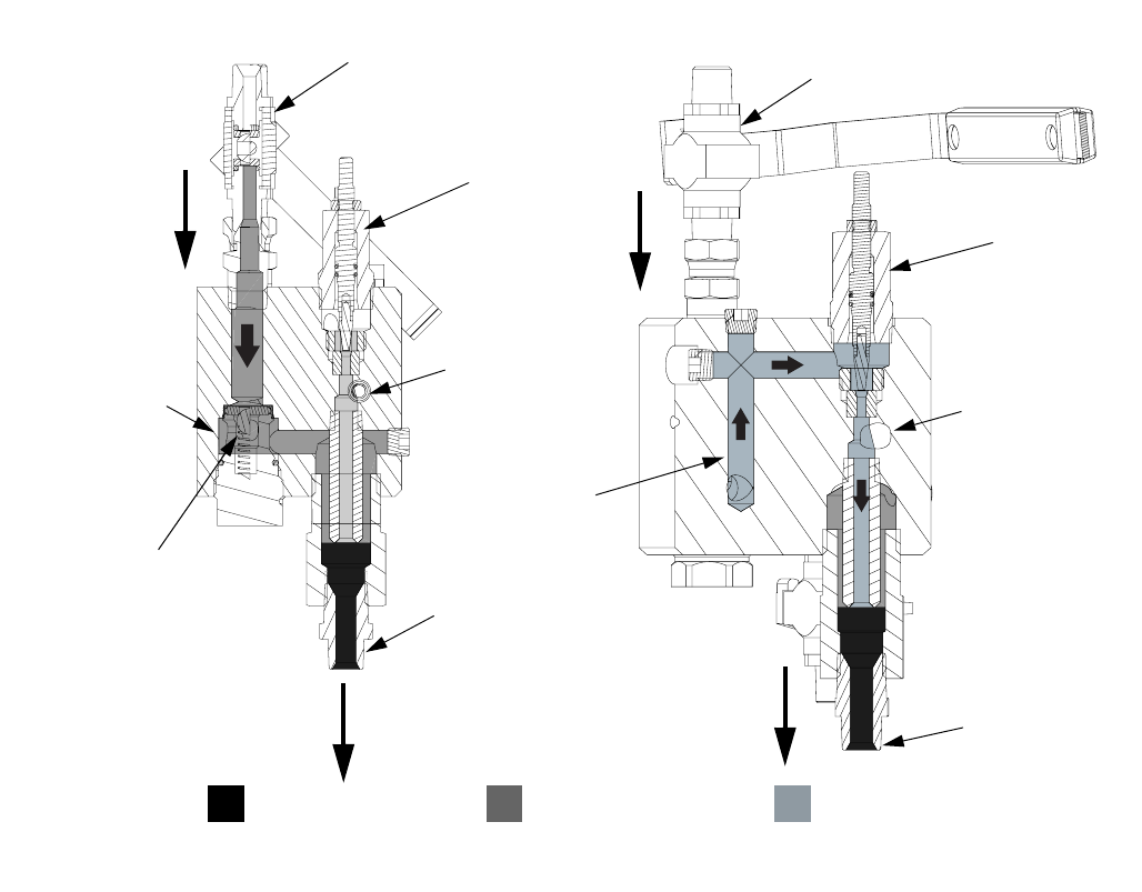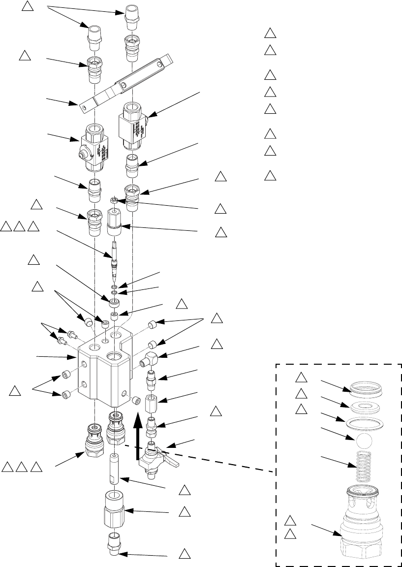 Manifold block and internal parts 302 and 303 stainless steel, PTFE, tungsten carbide, elec-