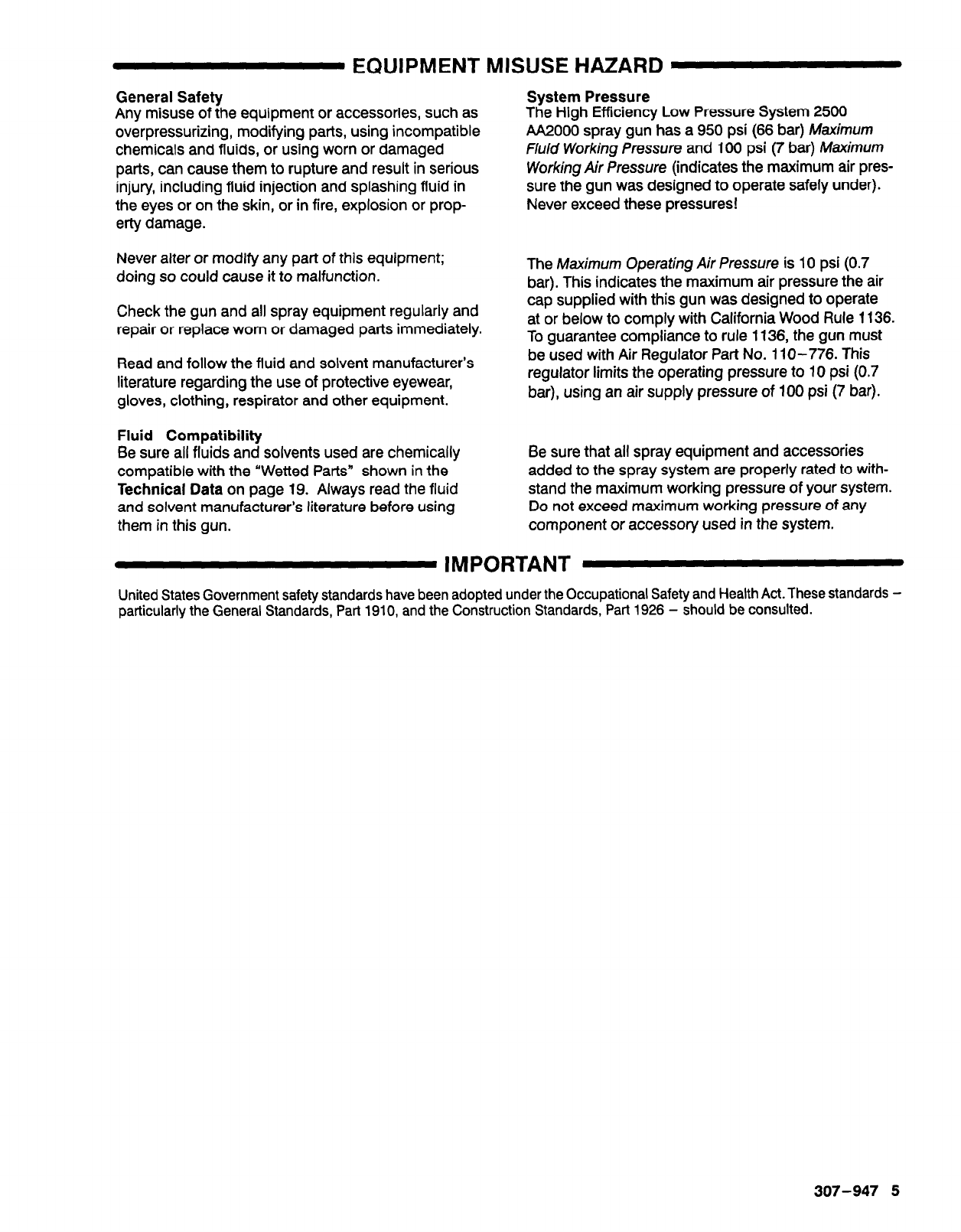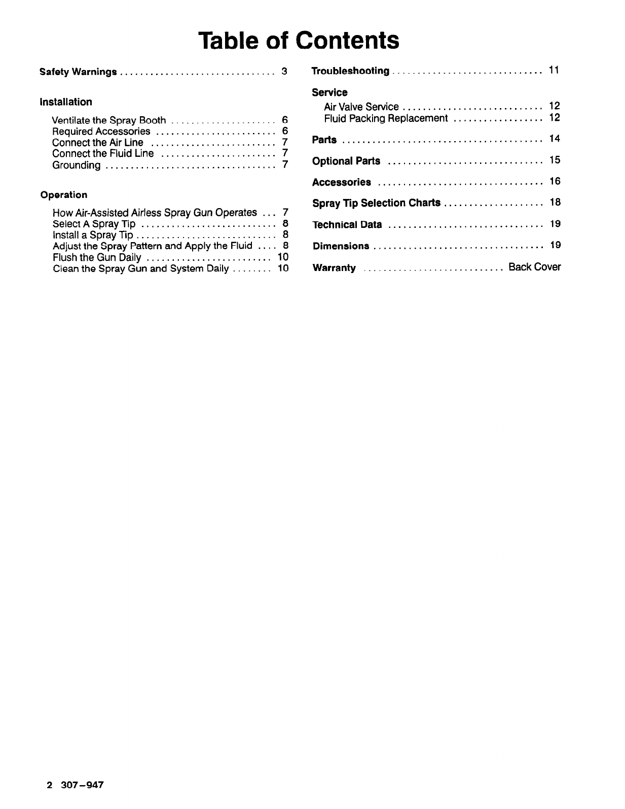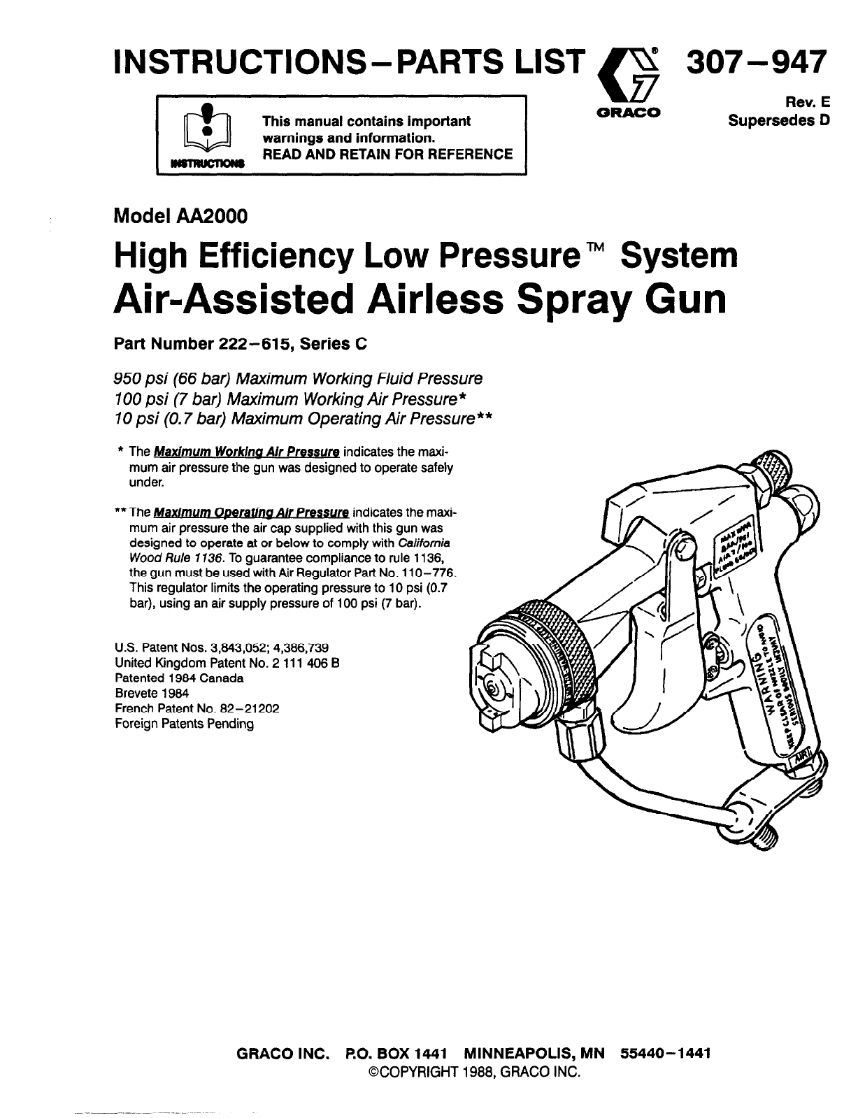 Graco Aa2000 Users Manual 307947E High Efficiency Low Pressure System Air Assisted Airless Spray Gun
