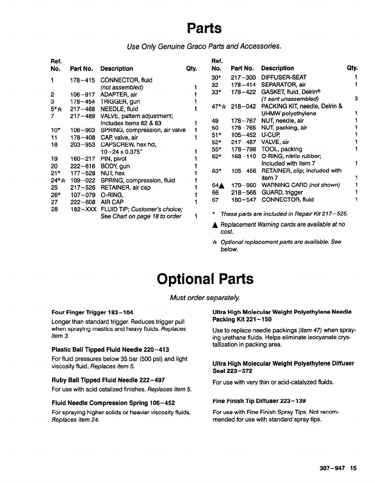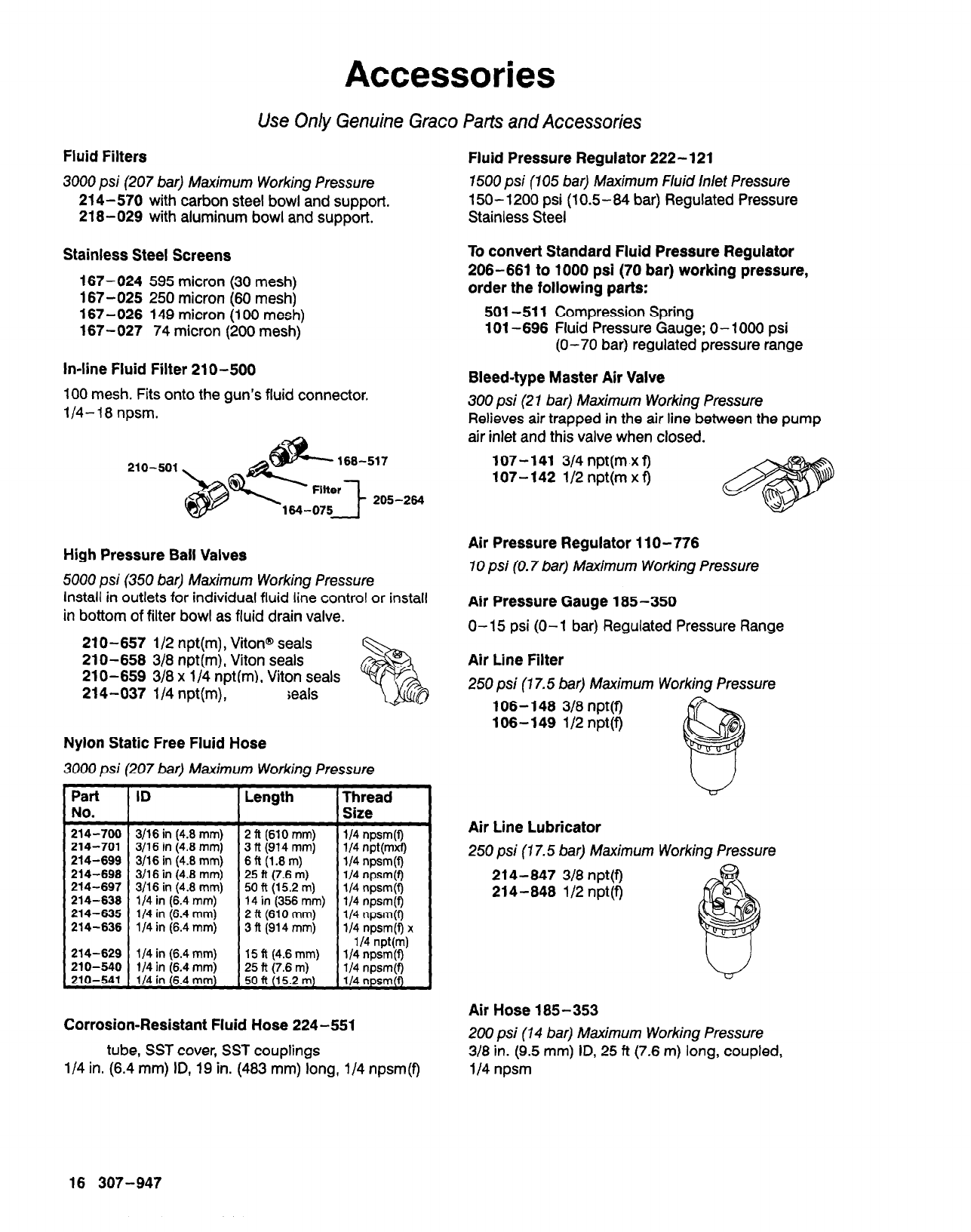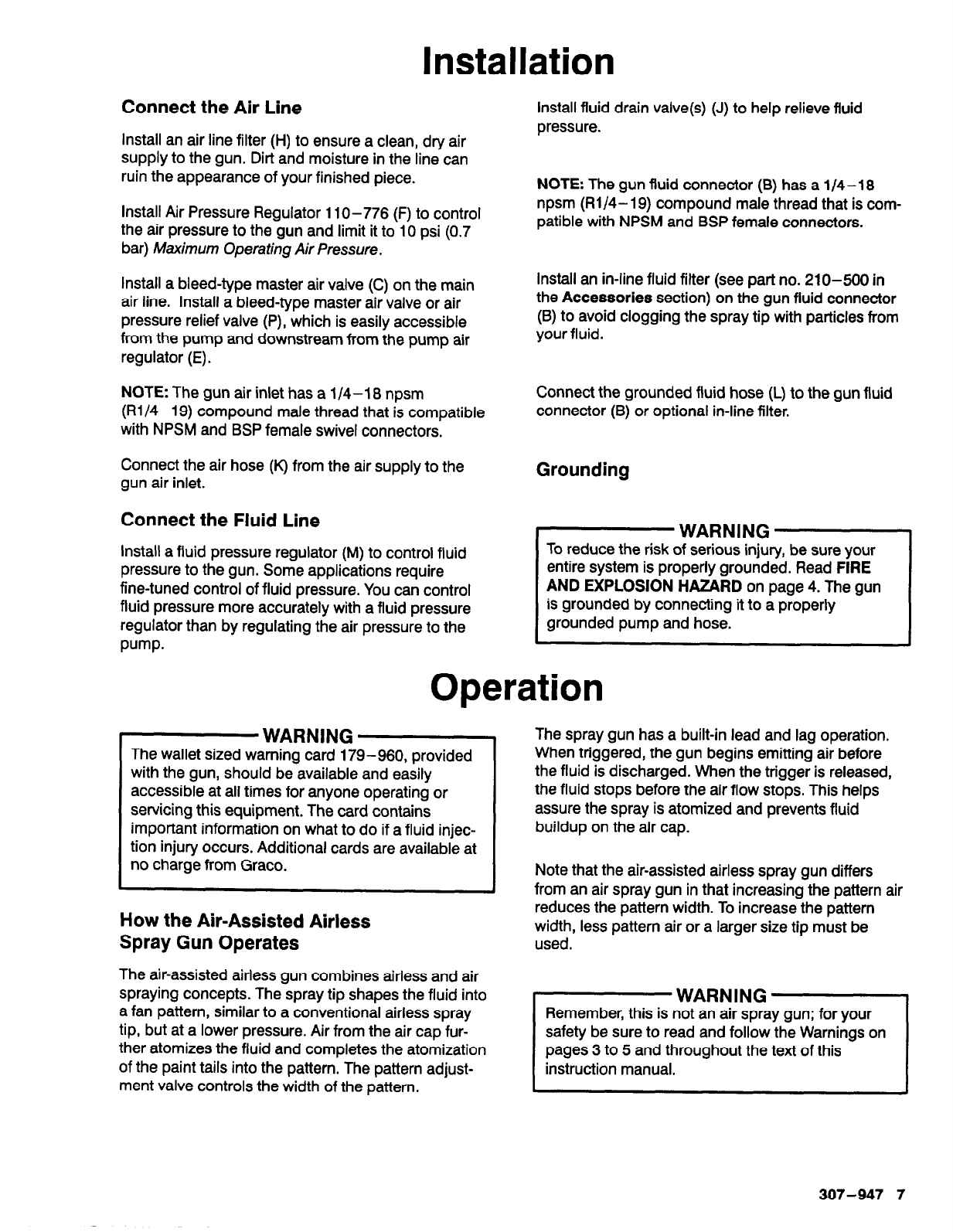 Graco Aa2000 Users Manual 307947E High Efficiency Low Pressure System Air Assisted Airless Spray Gun