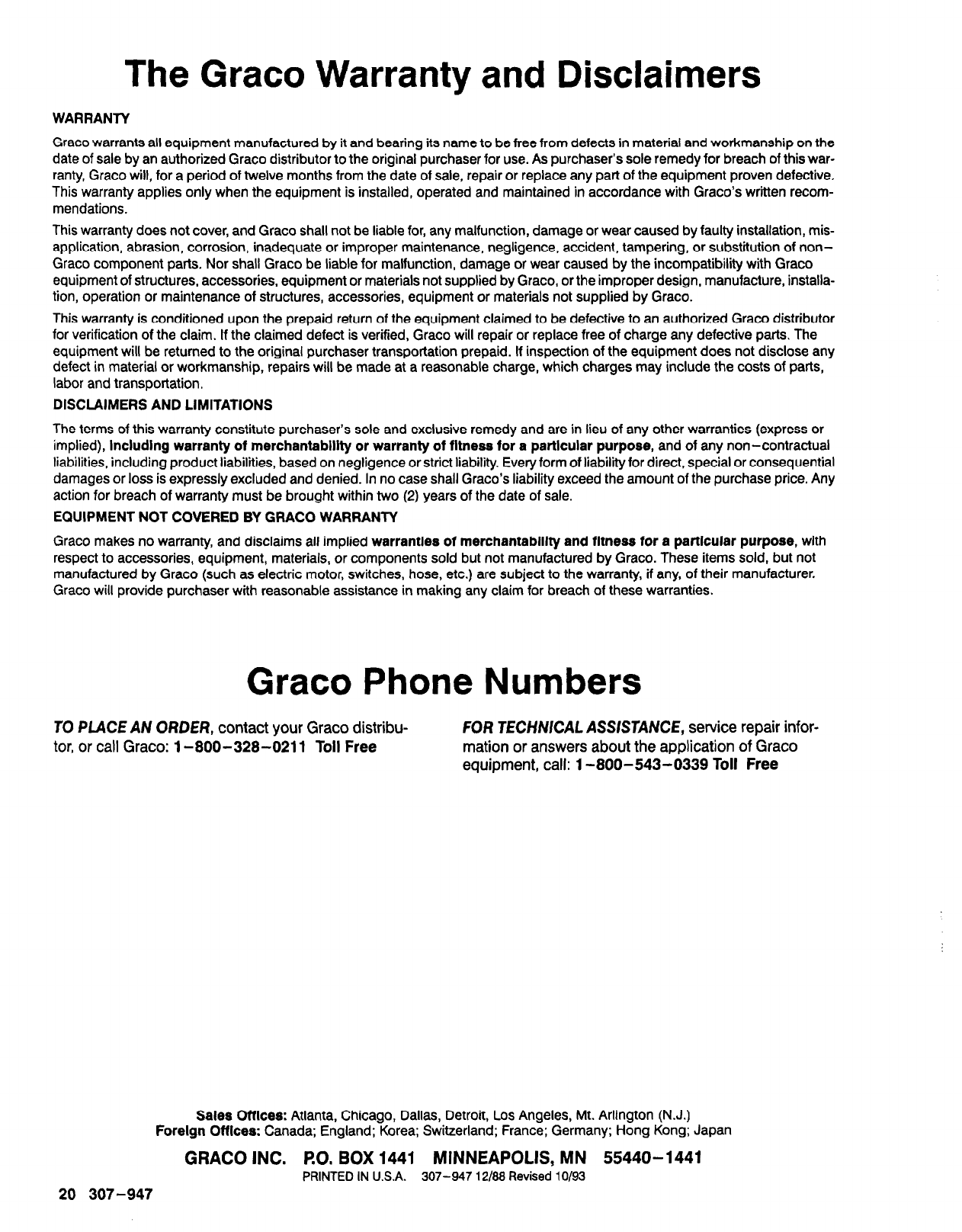 manufactured by Grace (such as electric motor, switches, hose, etc.) are subject to the warranty, if any, of their manufacturer.